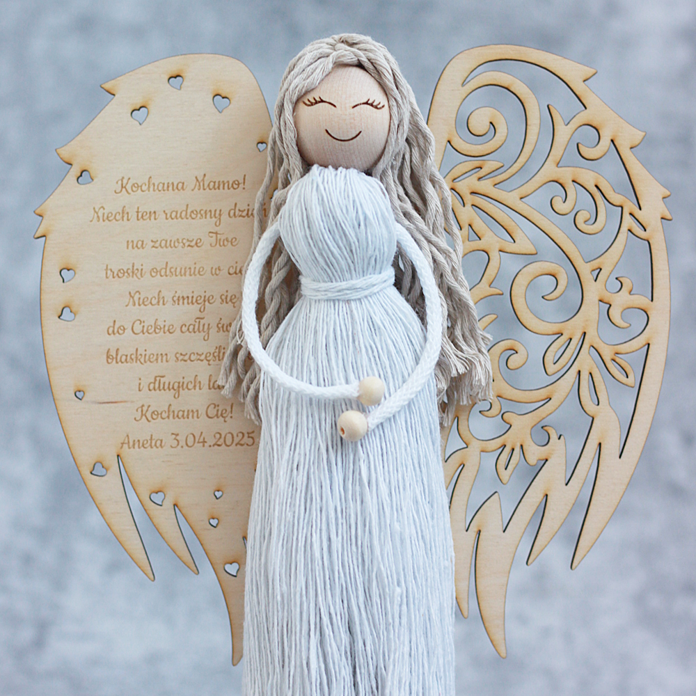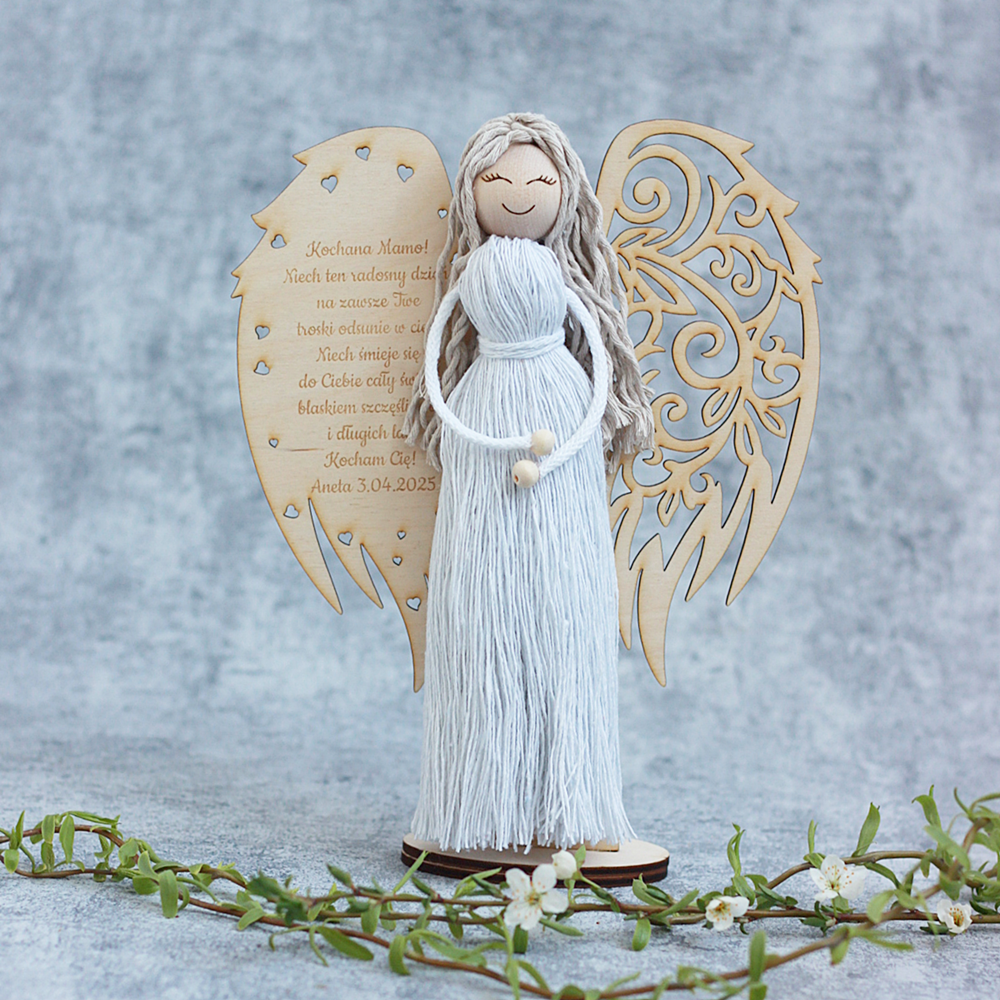 Anioł z Makramy ze Skrzydłami z Grawerem – Dekoracja i Prezent