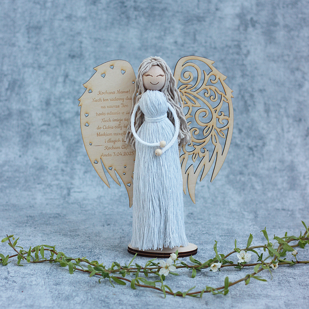 Anioł makrama, personalizowany do postawienia dla Mamy - prezent Dzień Mamy/ Matki/ Urodziny