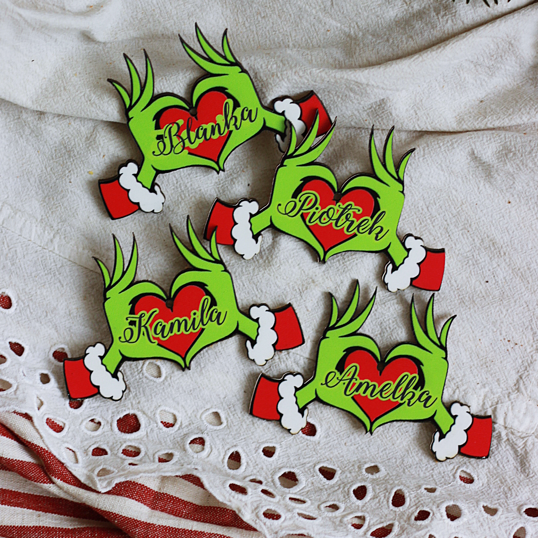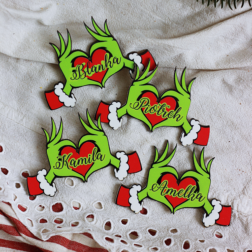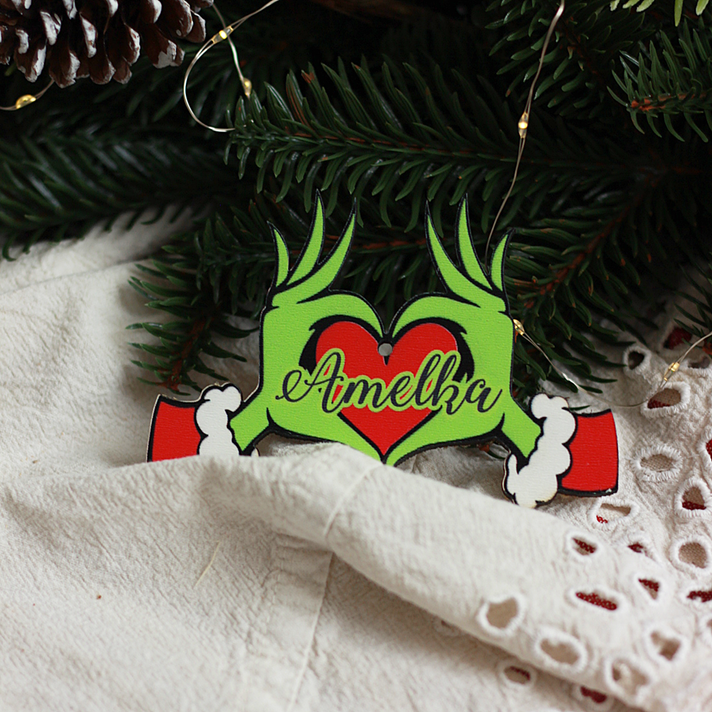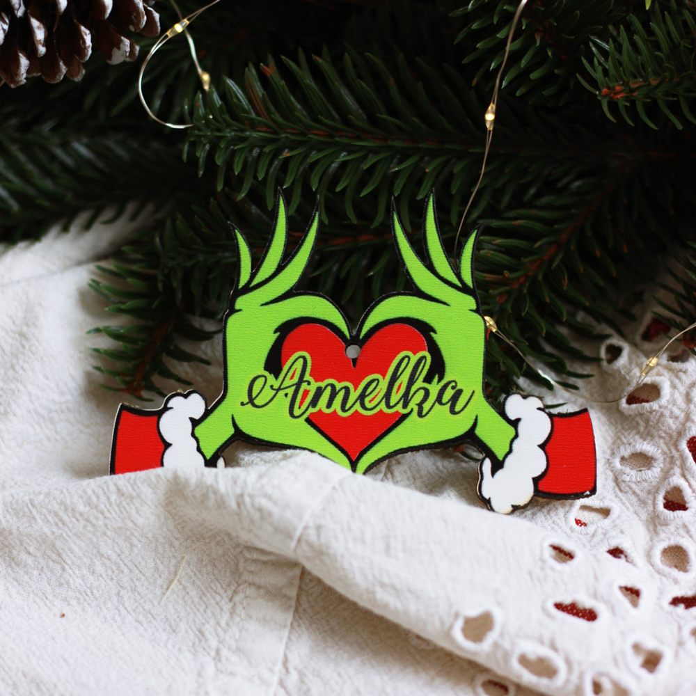Bombka na choinkę/ zawieszka/ bombka świąteczna ręce, Grinch/ bombka personalizowana - Mikołajki/ Święta Bożego Narodzenia