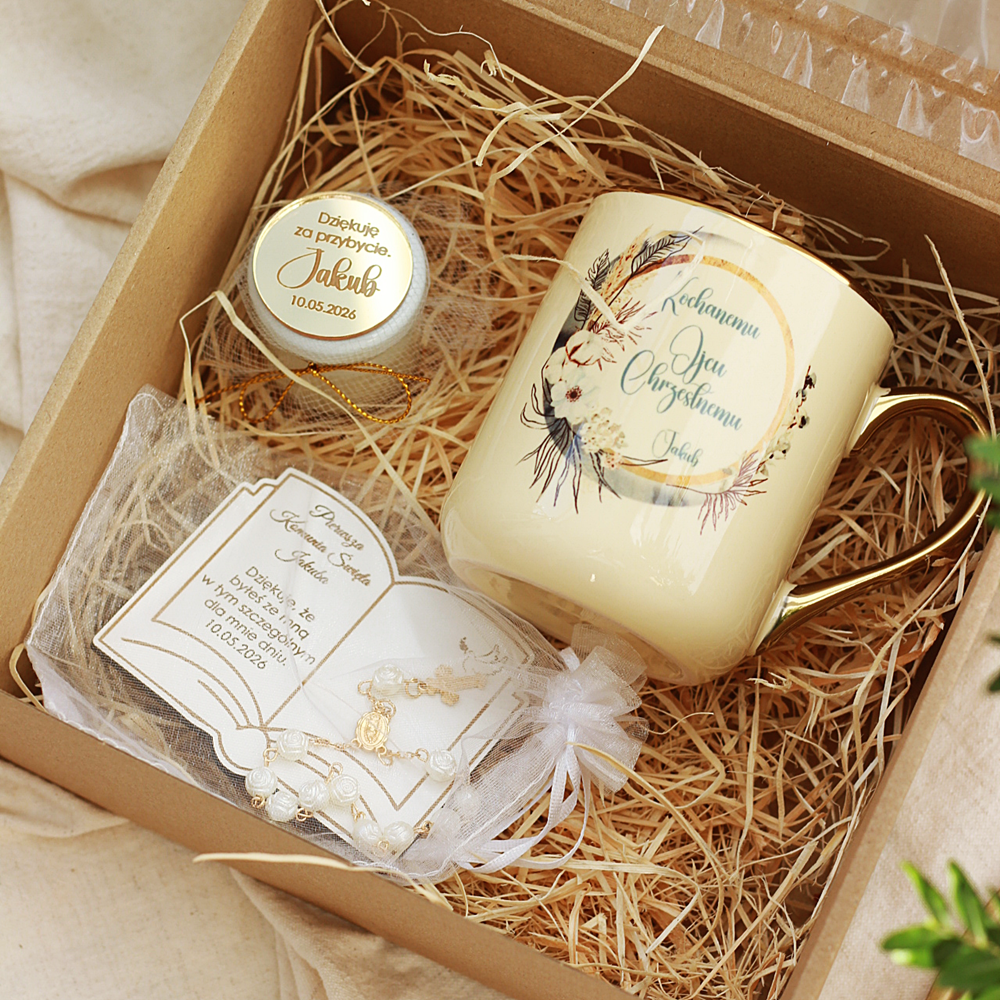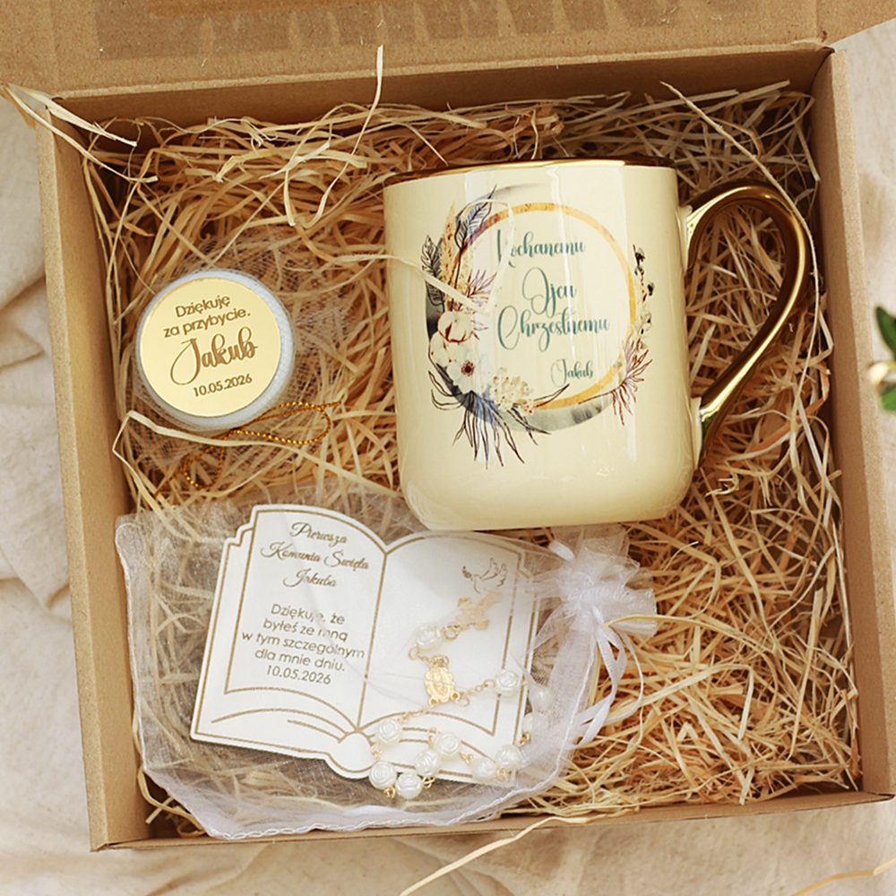 Box komunijny to doskonały wybór dla osób, które szukają eleganckiego i gotowego upominku. Każdy element zestawu został starannie dobrany, aby stworzyć spójną i wyjątkową całość.
