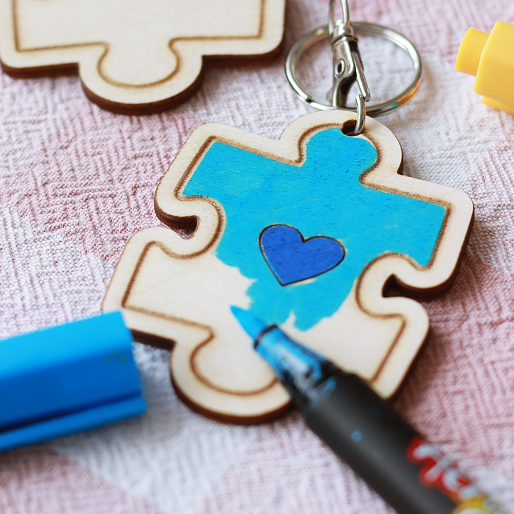 Brelok do kluczy/ sklejka/puzzel do pokolorowania/ dla dzieci - Światowy Dzień Świadomości Autyzmu