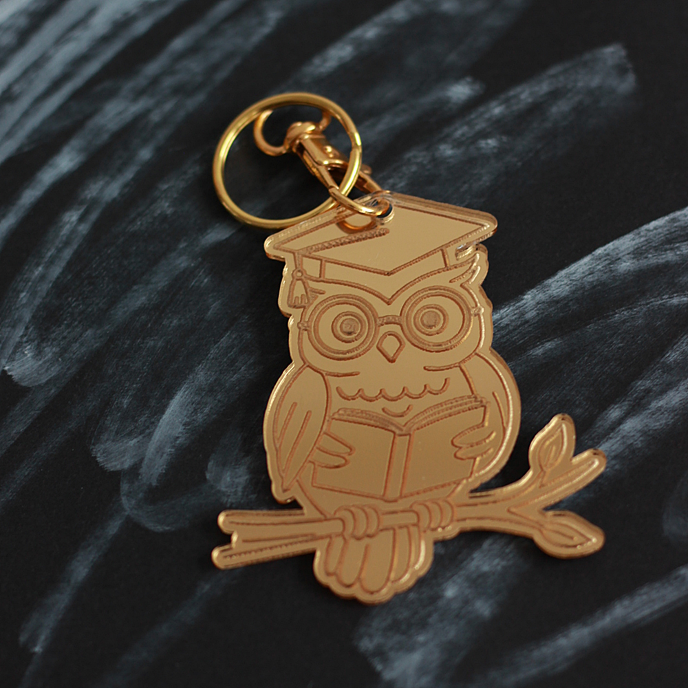 Stylowy brelok z motywem sowy wykonany z lustrzanego materiału to wyjątkowy i symboliczny upominek dla nauczyciela. Elegancki wygląd i możliwość personalizacji sprawiają, że jest to idealna drobna pamiątka.