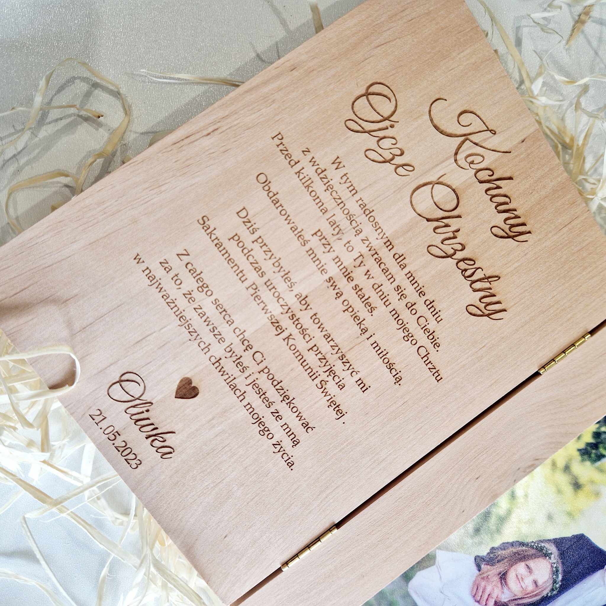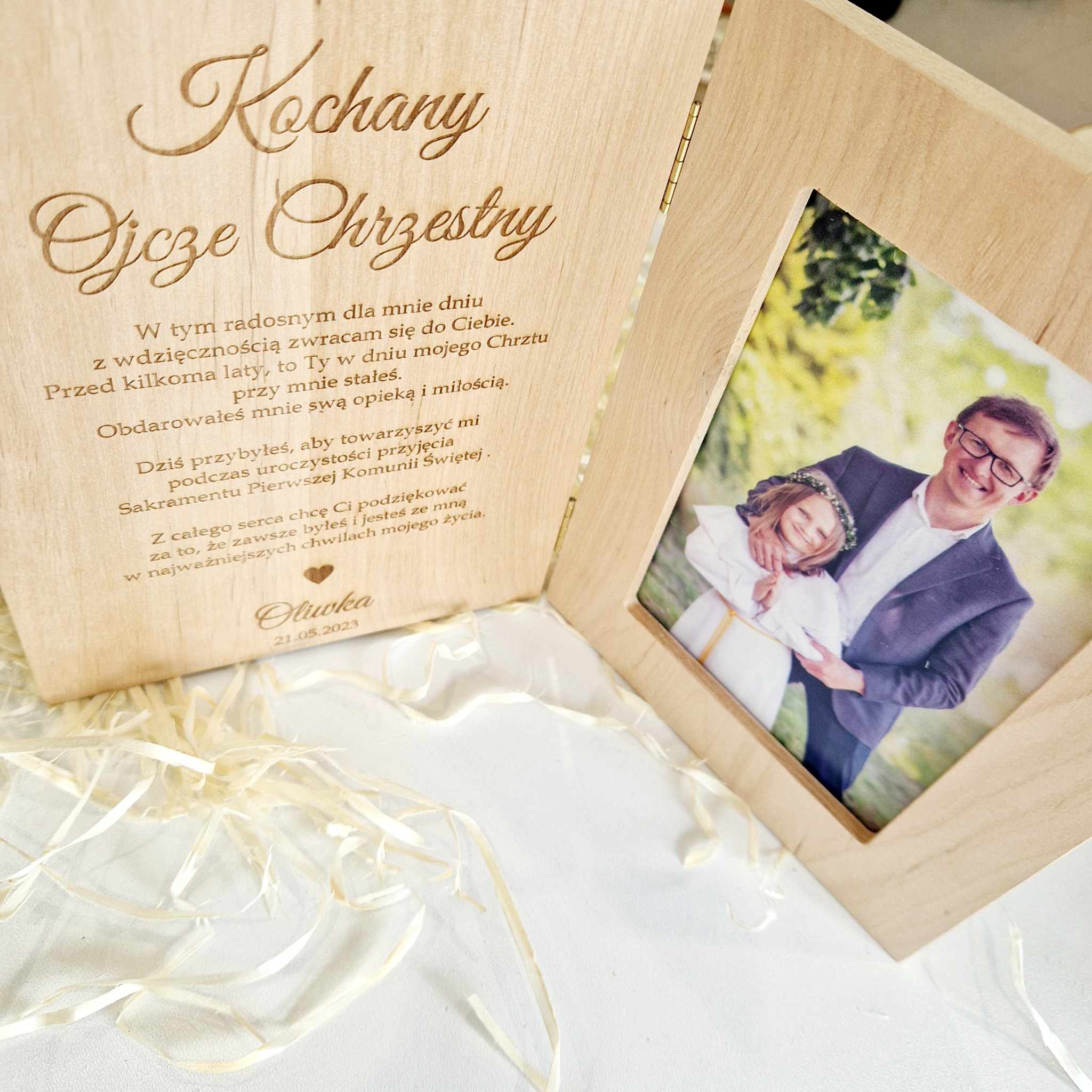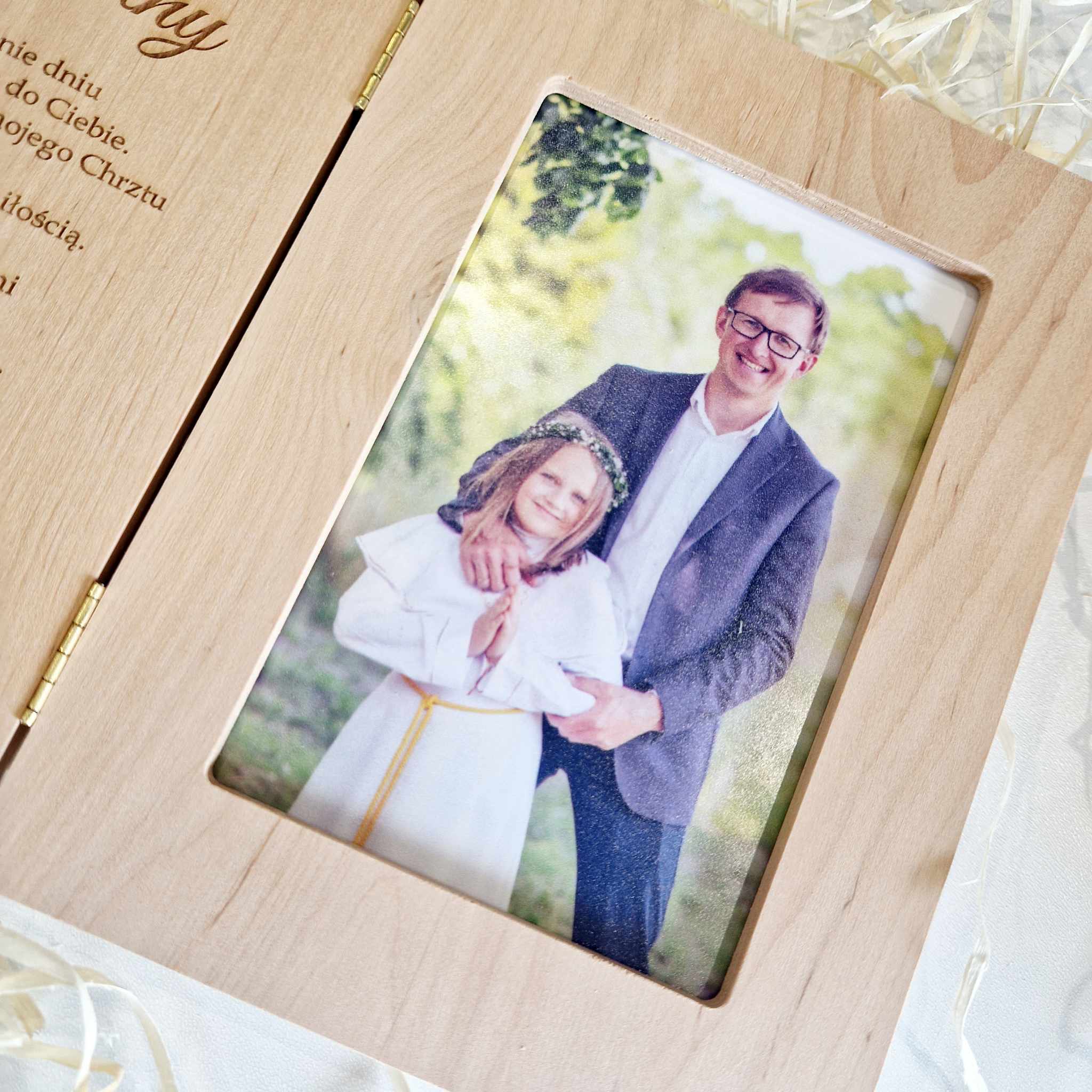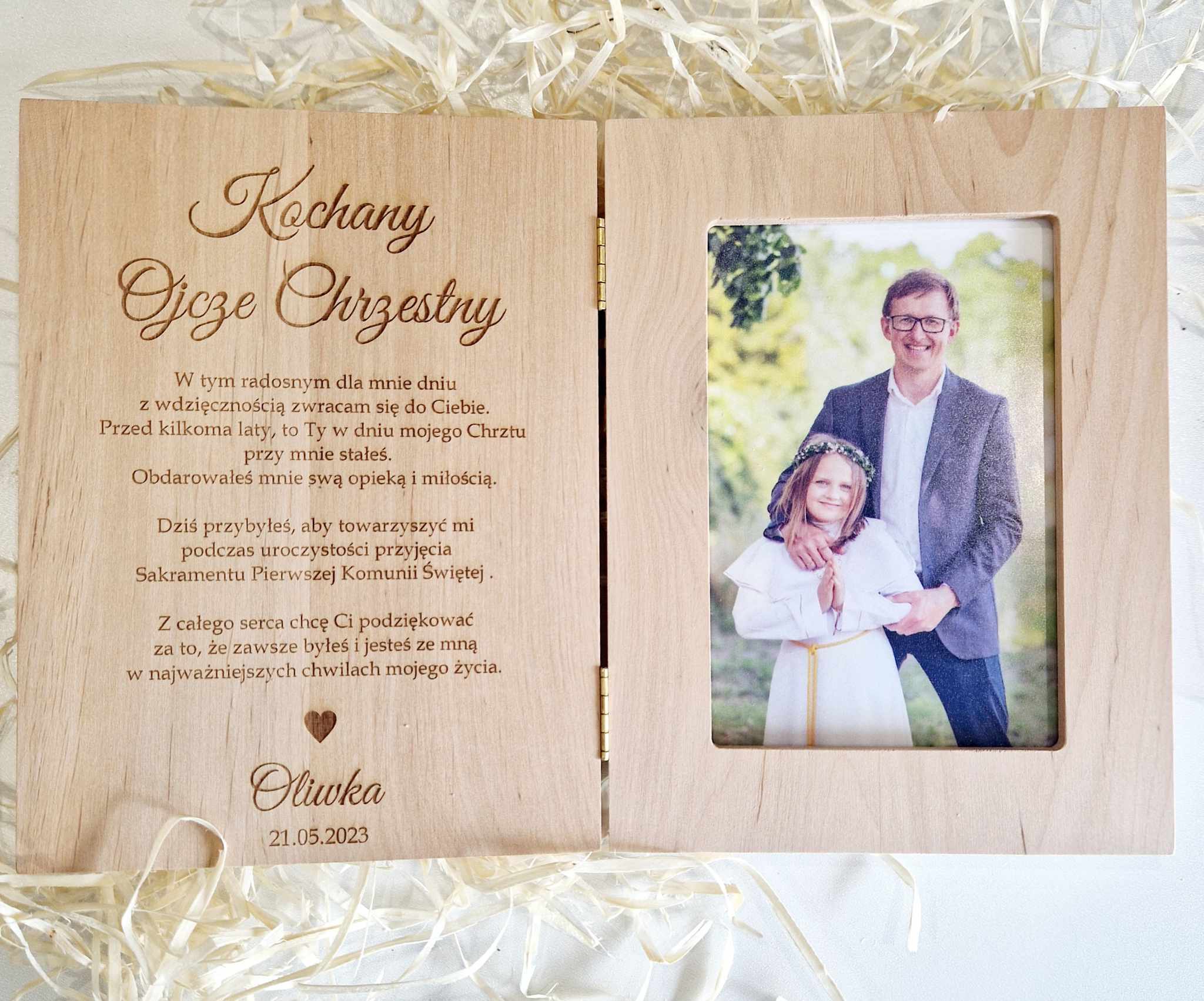 Drewniana ramka ze zdjęciem podziękowanie I Komunia Święta - rodzice, chrzestni, dziadkowie, goście