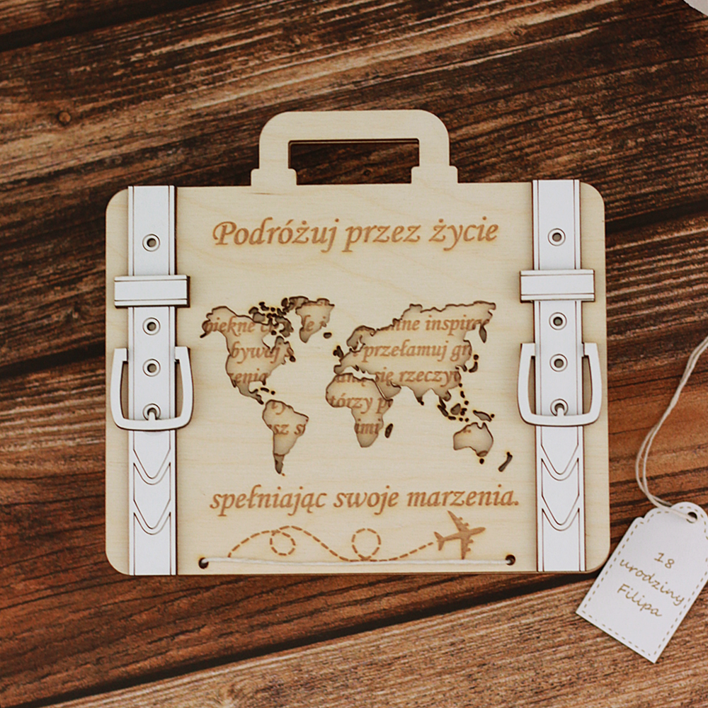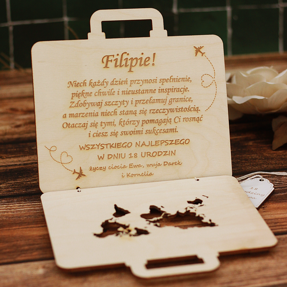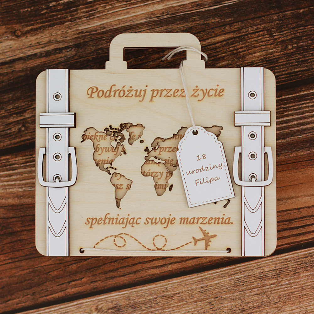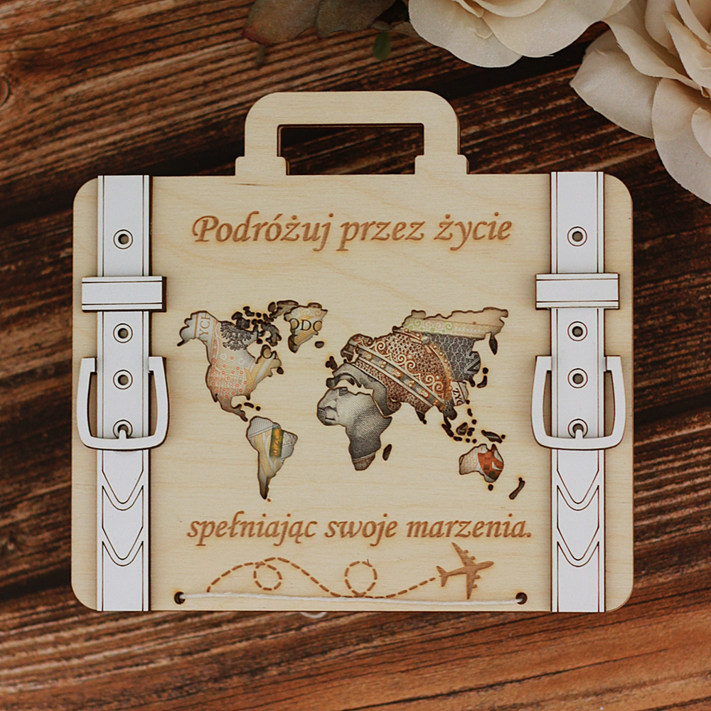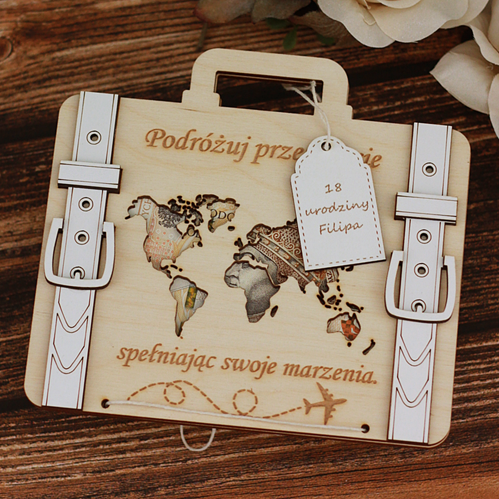 Kartka urodzinowa, prezent na gotówkę, pieniądze, walizka 18 20 30 40 50 60 urodziny