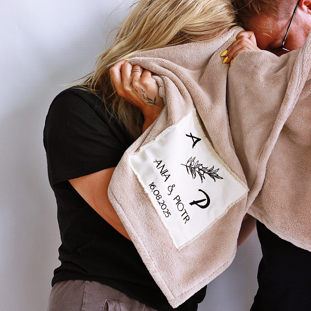 Duży Koc z Haftem – Personalizowany Prezent Ślubny