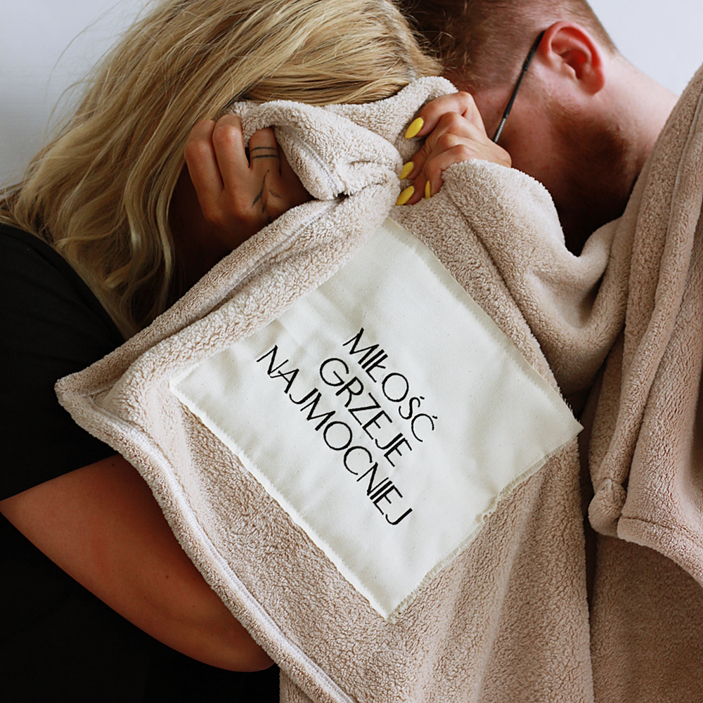 Koc haft/duży koc/personalizacja – miękki, ciepły i wyjątkowy prezent z okazji Ślubu lub Wesela. Wykonany z przyjemnej w dotyku dzianiny z personalizowanym haftem, który nadaje mu niepowtarzalnego charakteru.