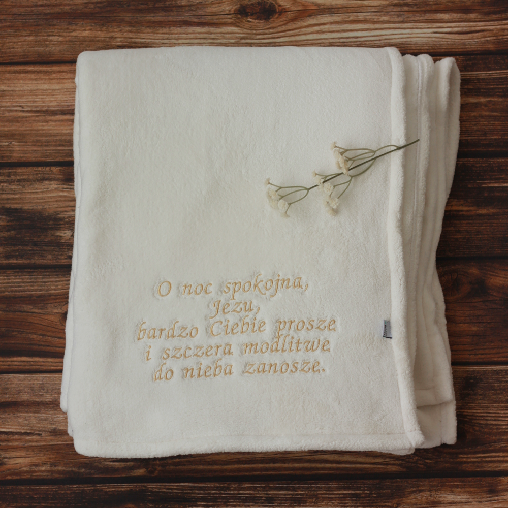 Koc z haftem/ koc prezent na Komunię/ koc z dowolnym haftem - wyjątkowy prezent I Komunia Święta