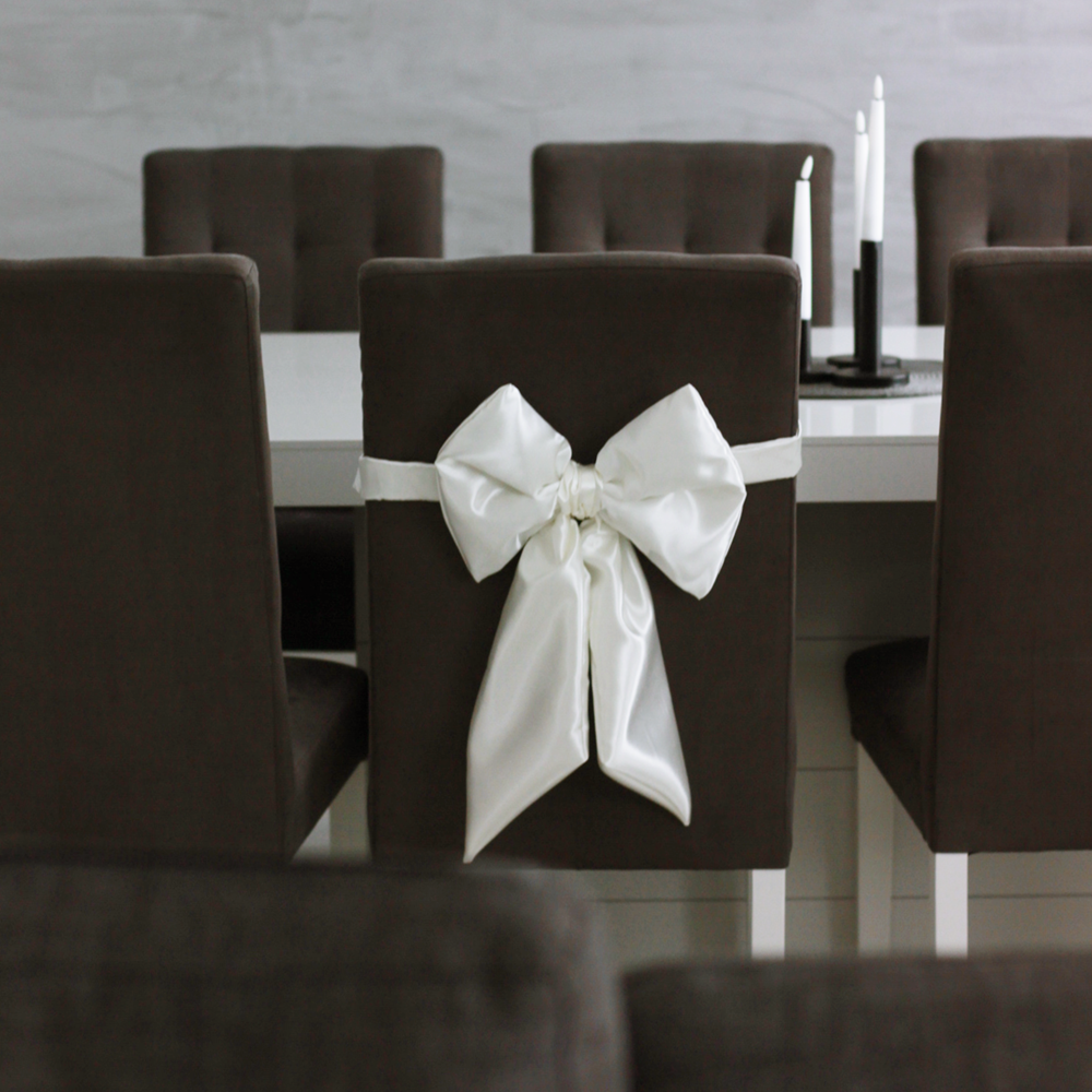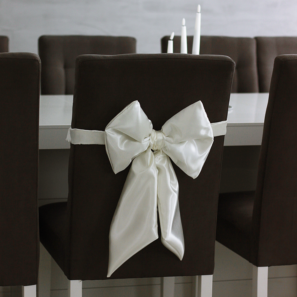 Elegancka kokarda dekoracyjna z satyny to idealny dodatek na przyjęcia komunijne, wesela i inne uroczystości. Subtelny połysk oraz klasyczne kolory sprawiają, że pięknie uzupełnia aranżację stołów i krzeseł.