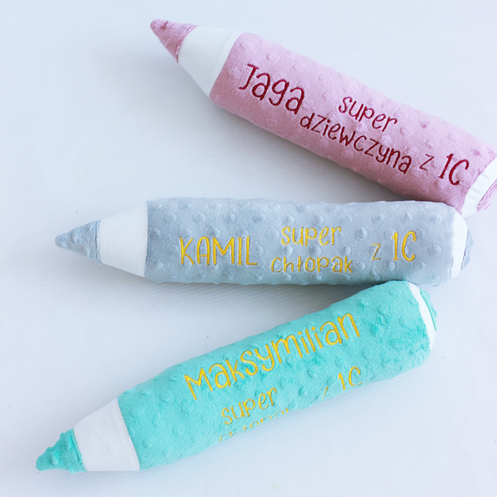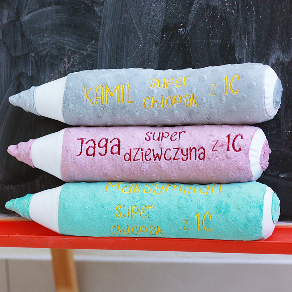 Urocza poduszka w kształcie kredki uszyta z mięciutkiego minky to wyjątkowy prezent dla dziecka. Personalizowany haft w cenie sprawia, że staje się niezapomnianą pamiątką na Dzień Chłopaka, Dzień Kobiet lub inne okazje.