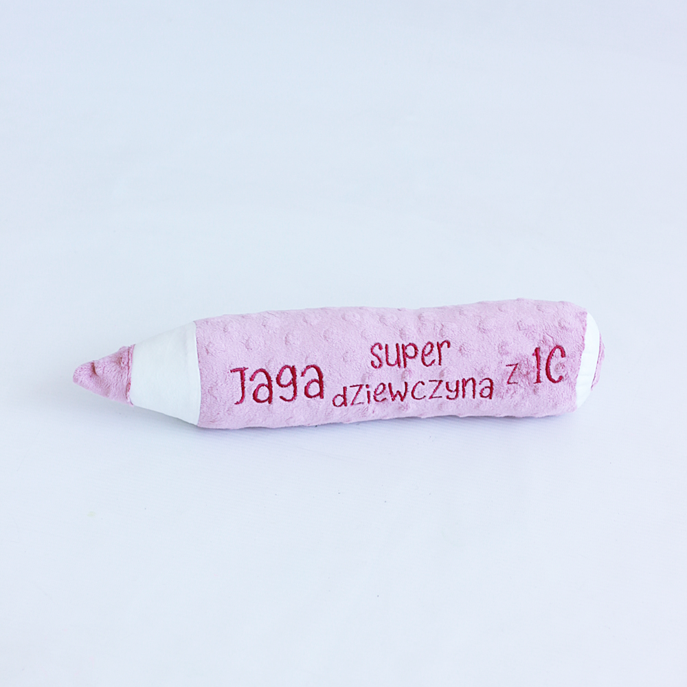 Wyjątkowa poduszka w kształcie kredki uszyta z mięciutkiego minky to idealny prezent dla dziecka. Personalizowany haft w cenie sprawia, że staje się piękną i niezapomnianą pamiątką.