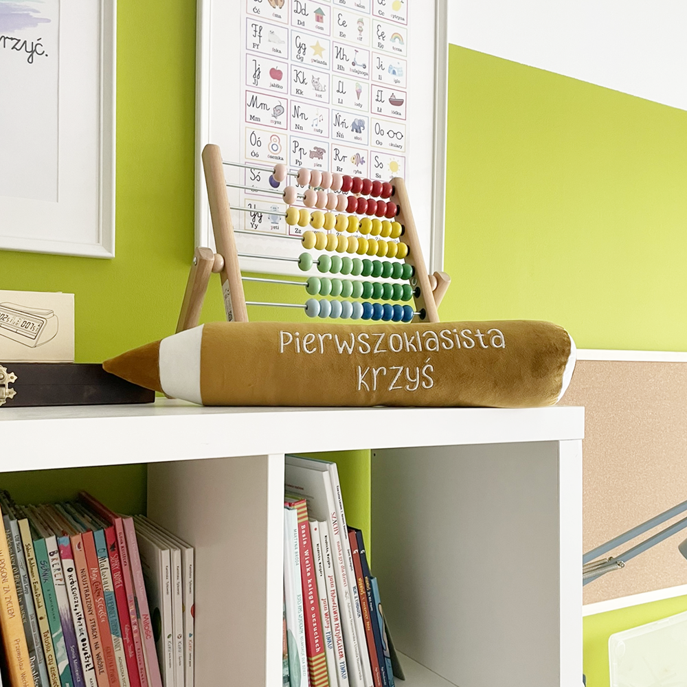 Mięciutka, mała kredka z weluru to urocza zabawka i praktyczny dodatek – sprawdzi się jako poduszka, zagłówek lub element szkolnej wyprawki. Haft imienia GRATIS sprawia, że jest wyjątkowym i spersonalizowanym prezentem dla dziecka lub pierwszoklasisty.