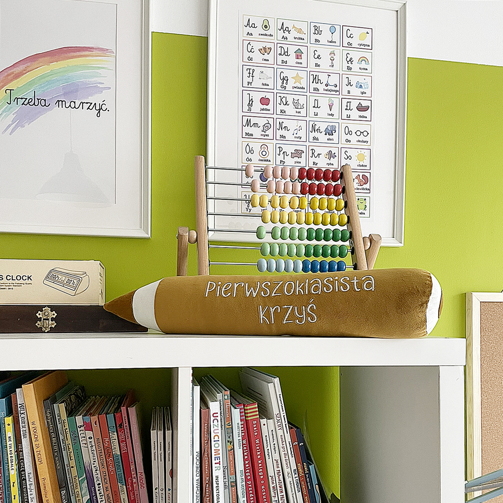 Średnia kredka z miękkiego weluru to idealny prezent dla dziecka – sprawdzi się jako zabawka, poduszka lub zagłówek. Dzięki personalizacji z haftem imienia GRATIS każda kredka staje się wyjątkowa. Doskonały element szkolnej wyprawki lub oryginalny upominek dla pierwszoklasisty.