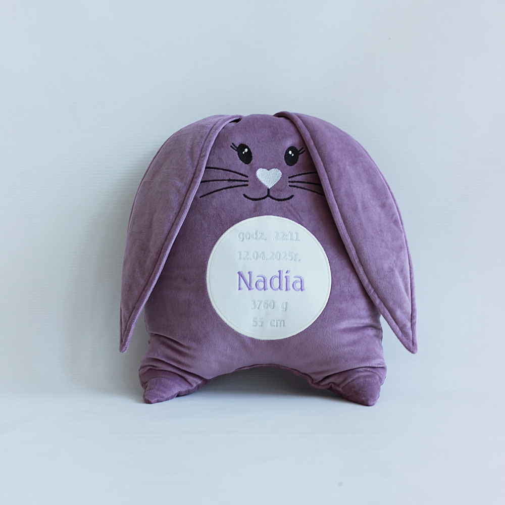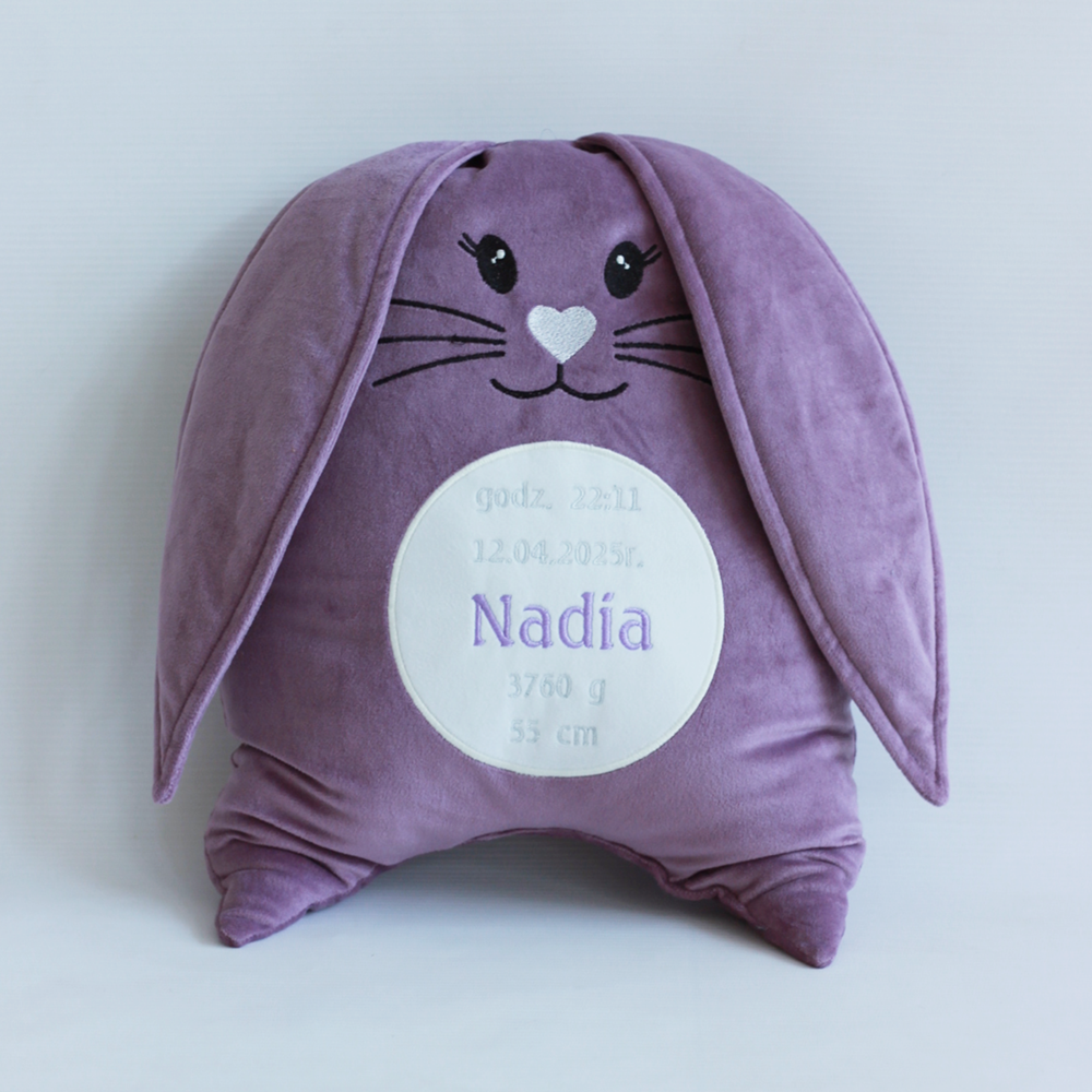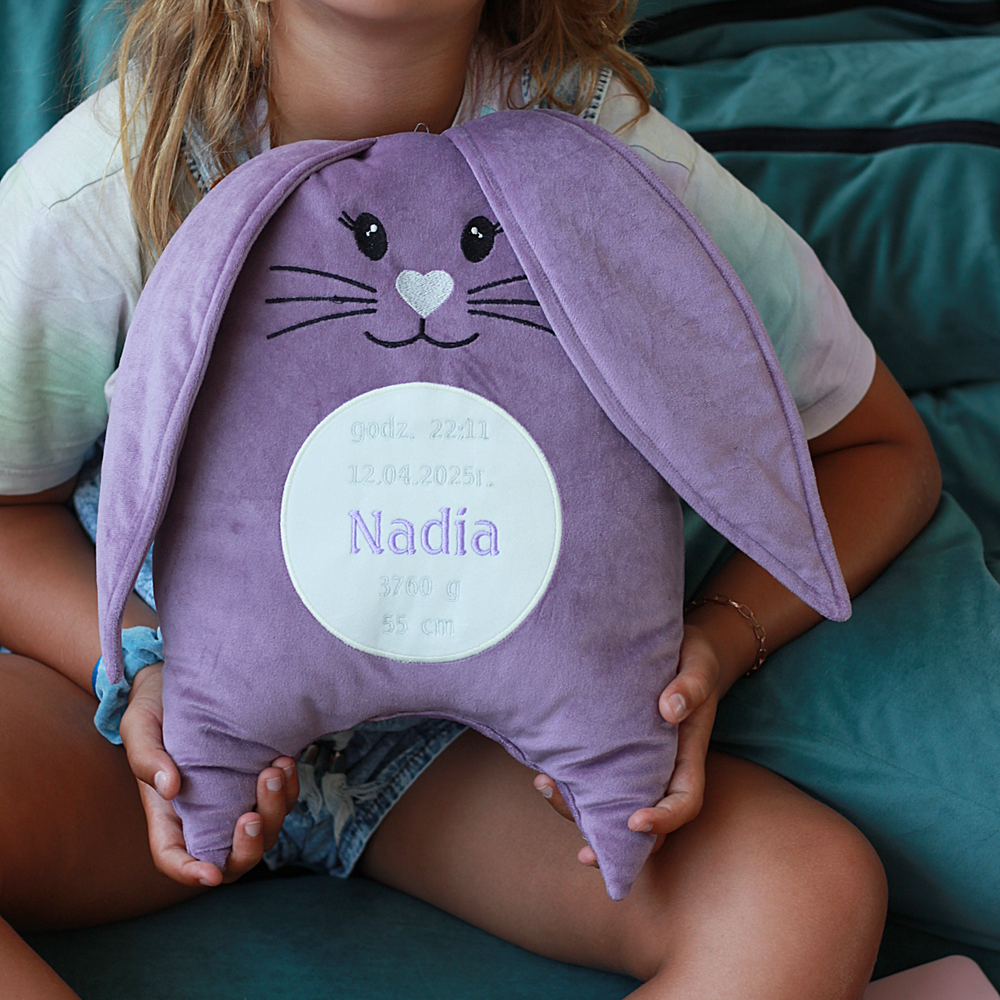 Królik/ króliczek, zając/ zajączek haft, welur - pluszak, przytulanka, poduszka personalizowana metryczka