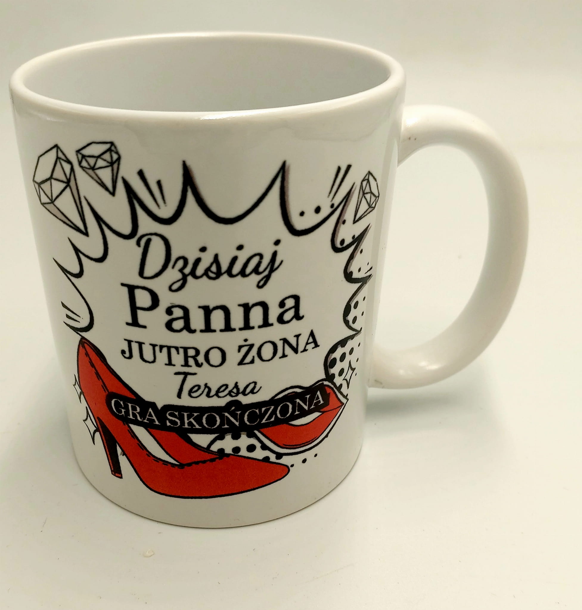Kubek z nadrukiem Dzisiaj Panna jutro żona - prezent Wieczór Panieński