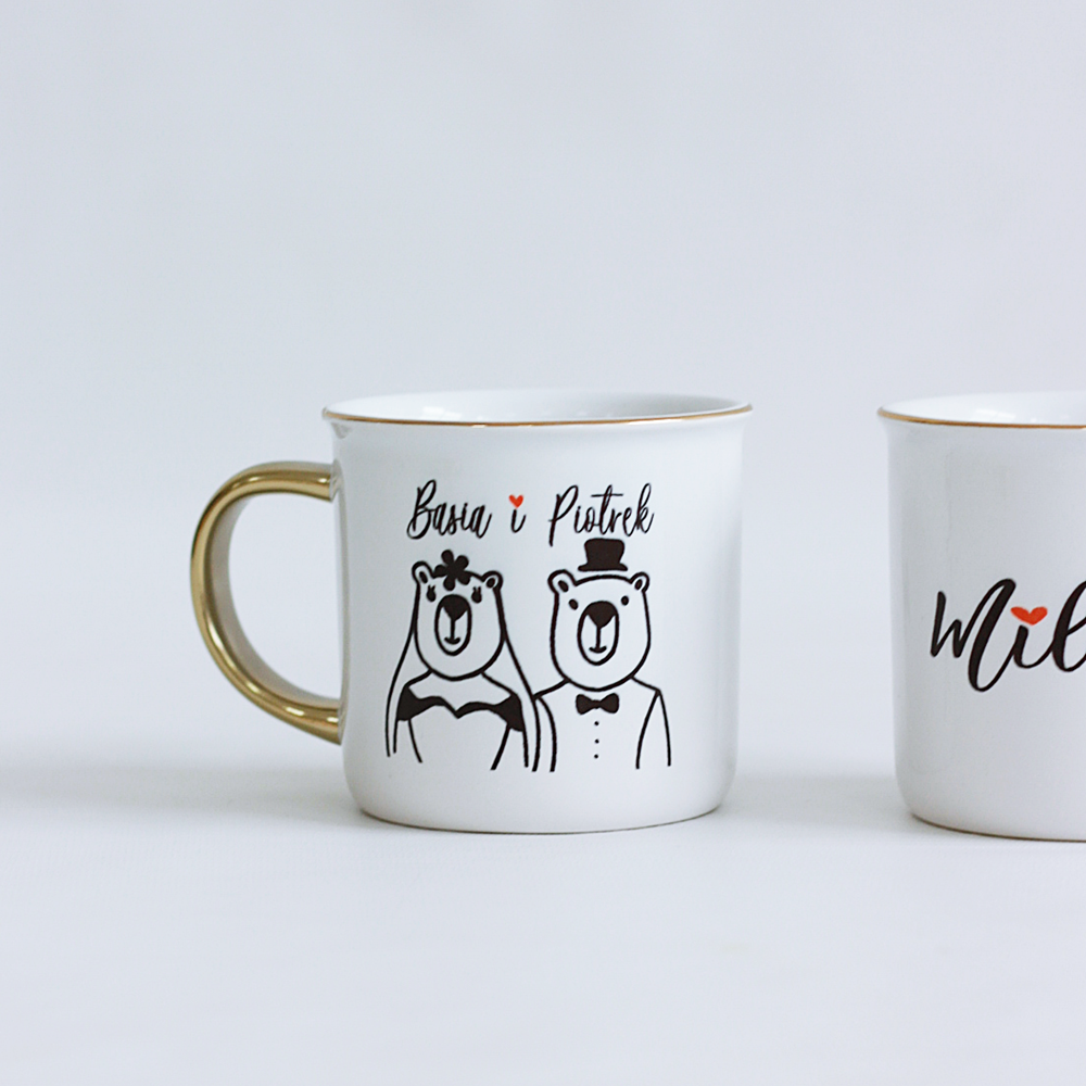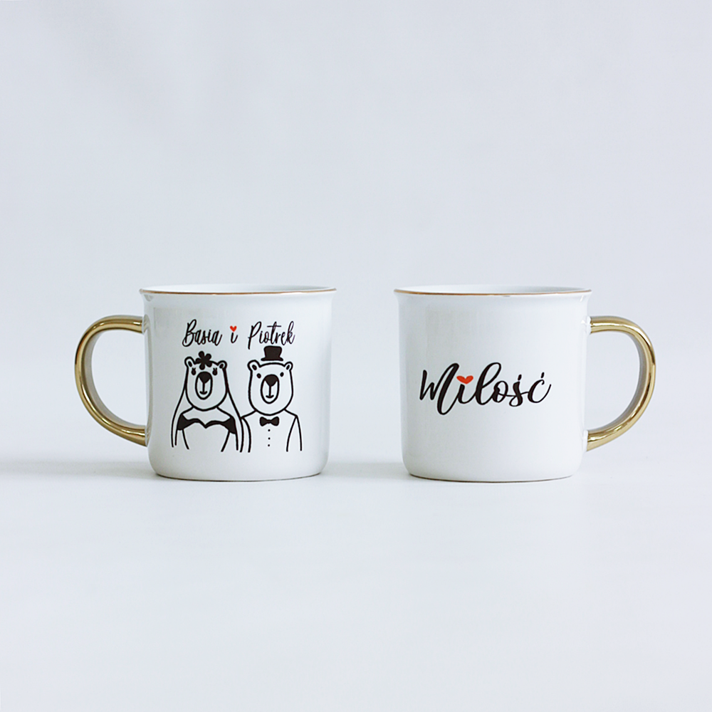 Kubek z nadrukiem/Ślub/Wesele/personalizacja – elegancki zestaw dwóch kubków z możliwością personalizacji. Doskonały pomysł na prezent ślubny, który jest zarówno praktyczny, jak i pamiątkowy.