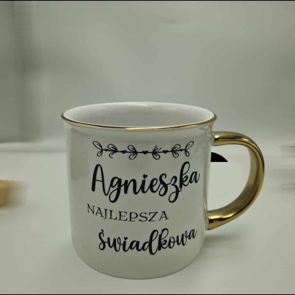 Kubek ze złotym rantem i uchem dla Świadków/ Świadkowej/ Świadka - podziękowanie Ślub/ Wesele