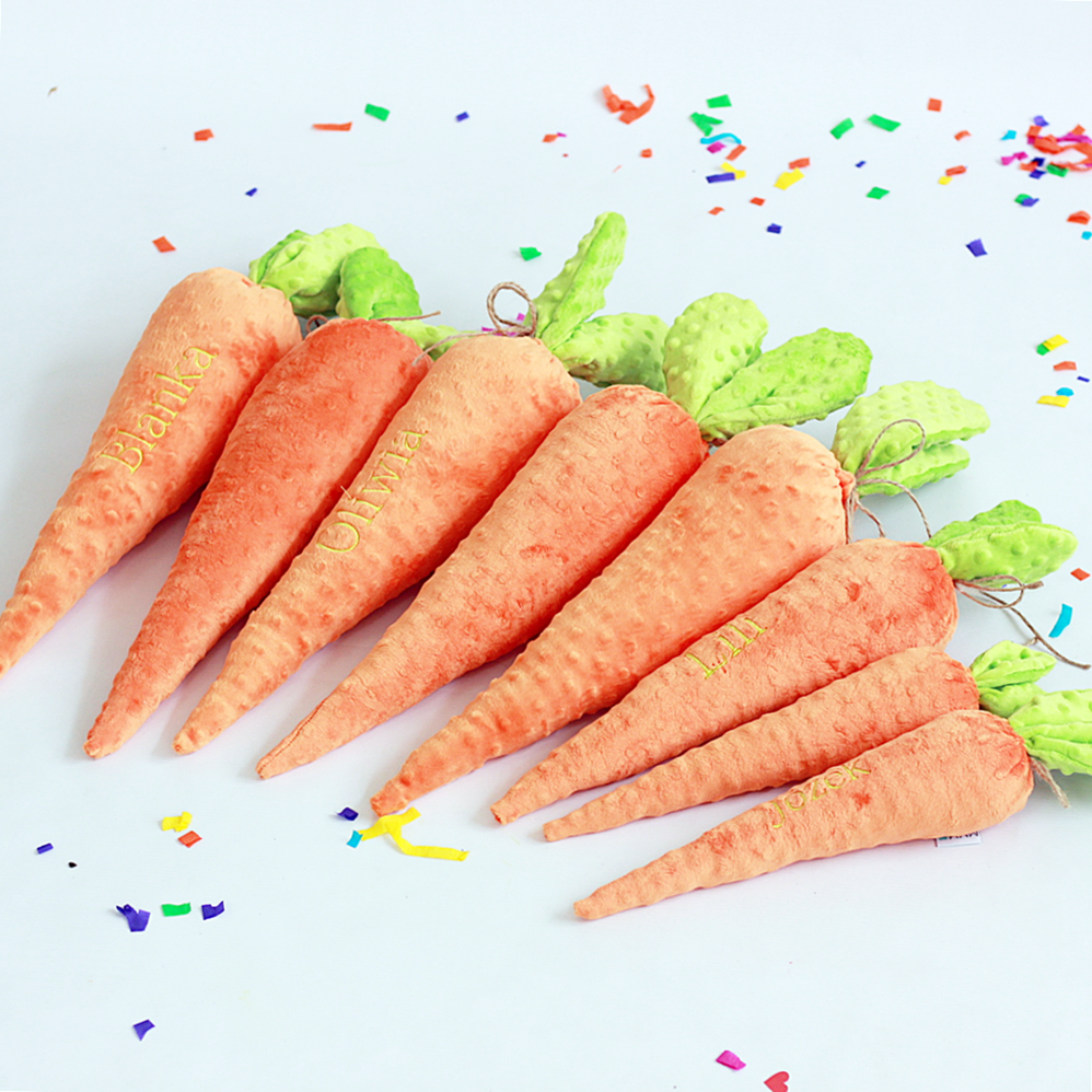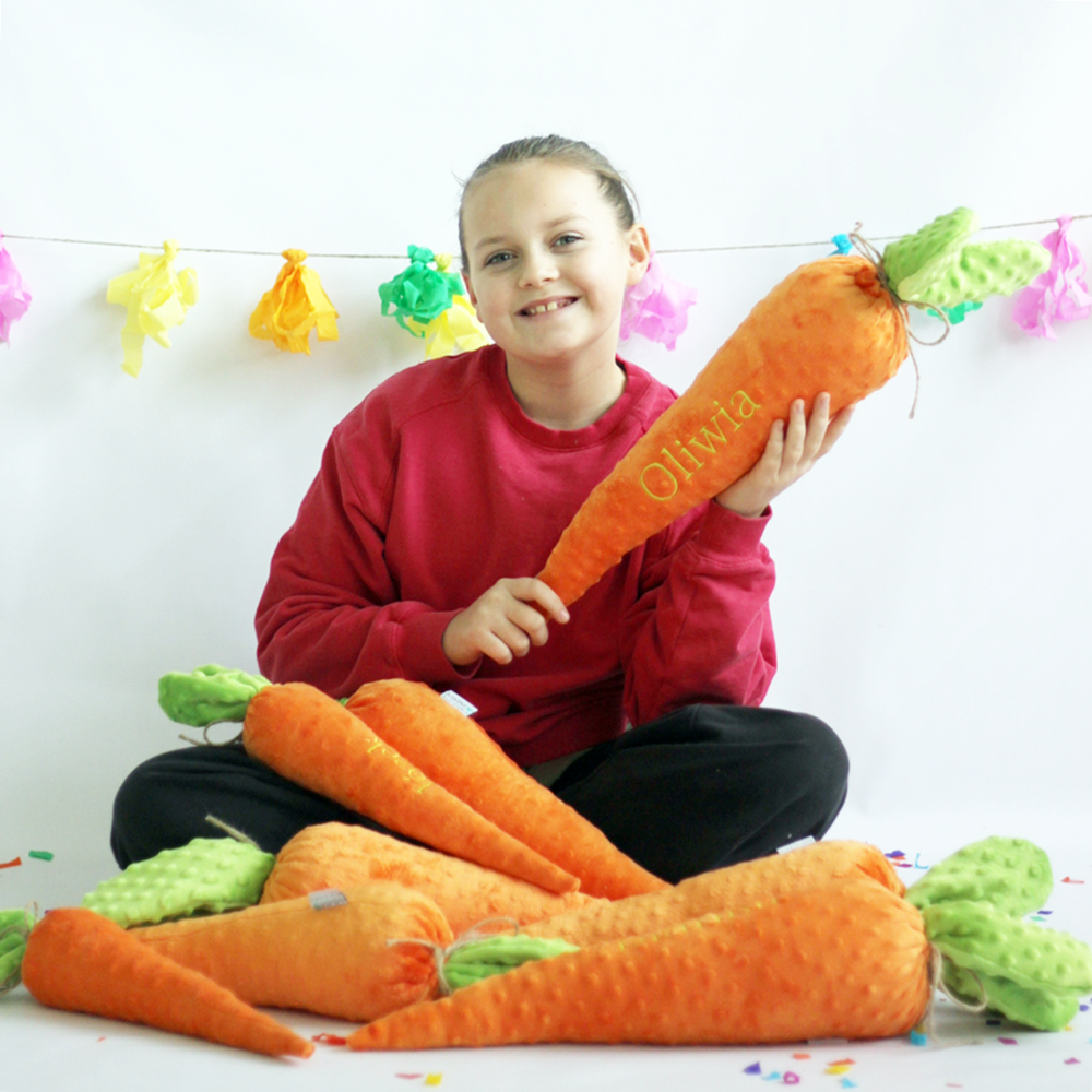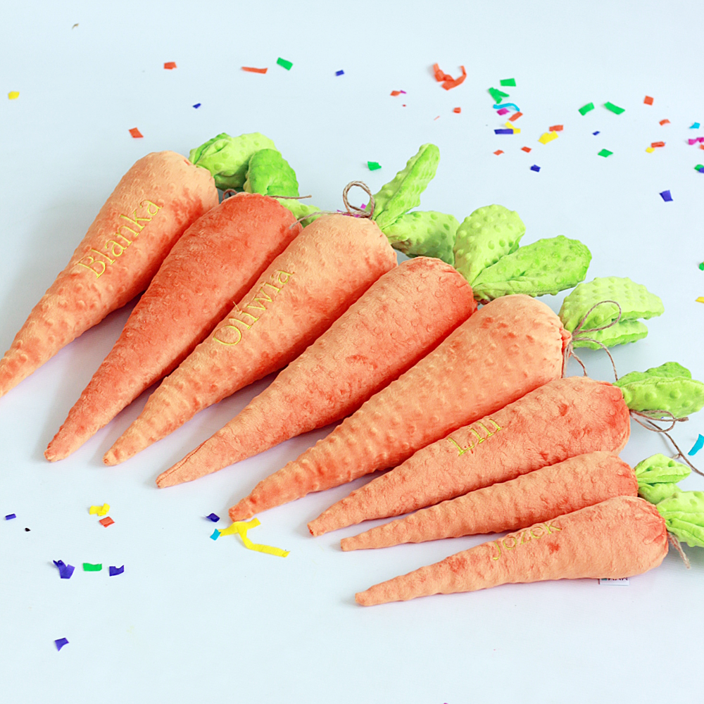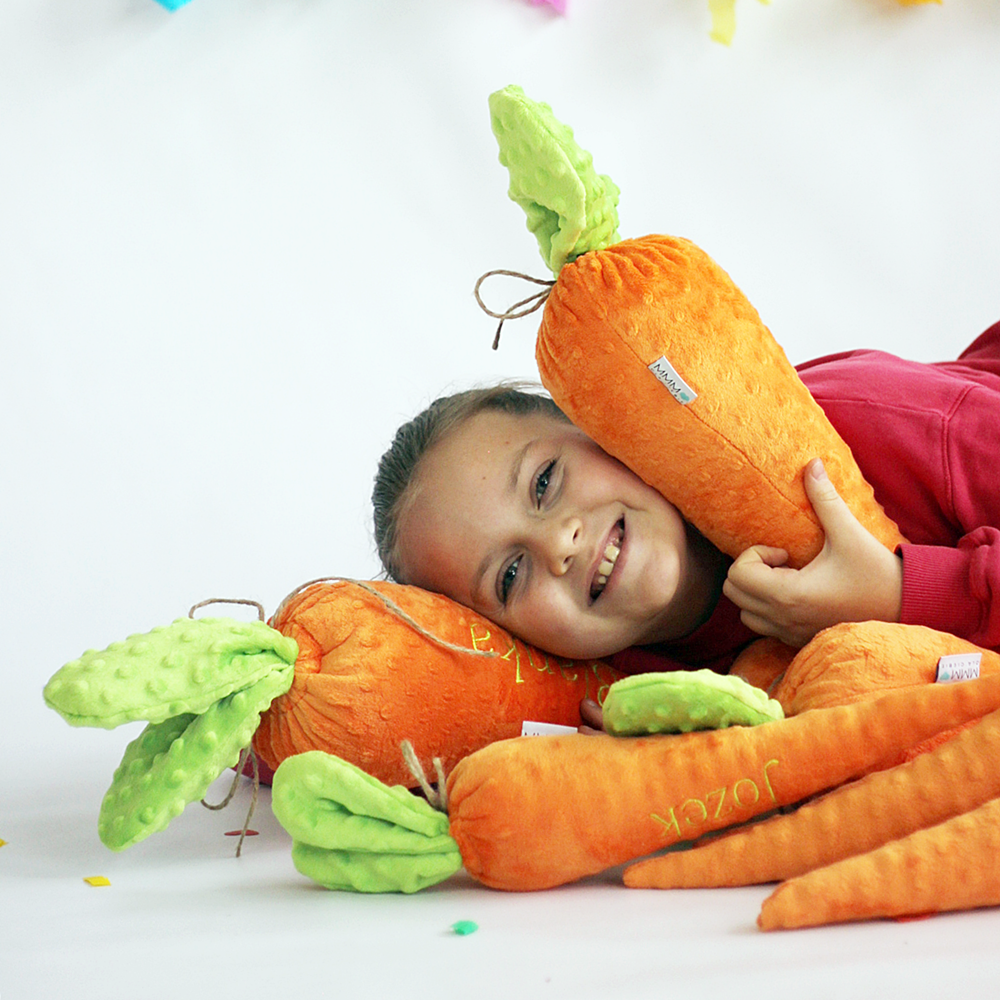 Każdą marchewkę możemy spersonalizować poprzez haftowanie imienia zupełnie za darmo! To sprawia, że staje się jeszcze bardziej wyjątkowym prezentem.