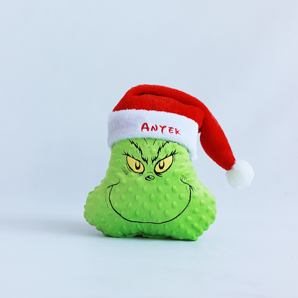 Maskotka/ przytulanka/ mini poduszka Grinch/ haft, czapka Mikołaja, imię - wyjątkowy prezent Mikołajki/ Boże Narodzenie