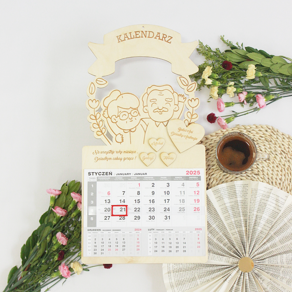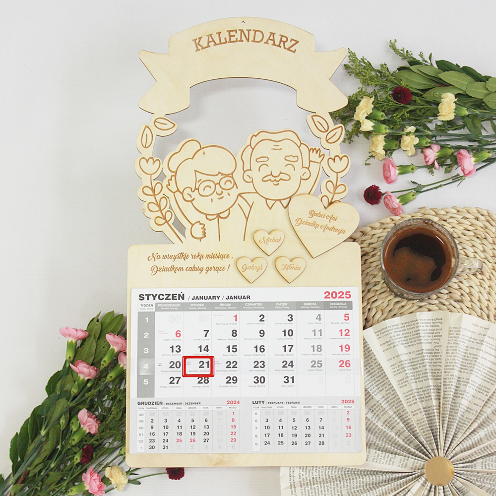 Mega kalendarz/ sklejka/ grawer/ dziadek/ babcia - prezent Dzień Babci i Dziadka