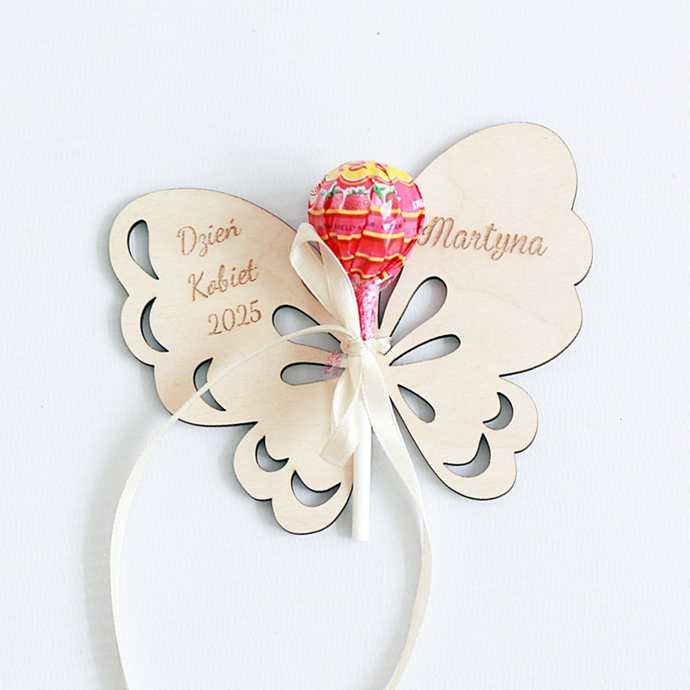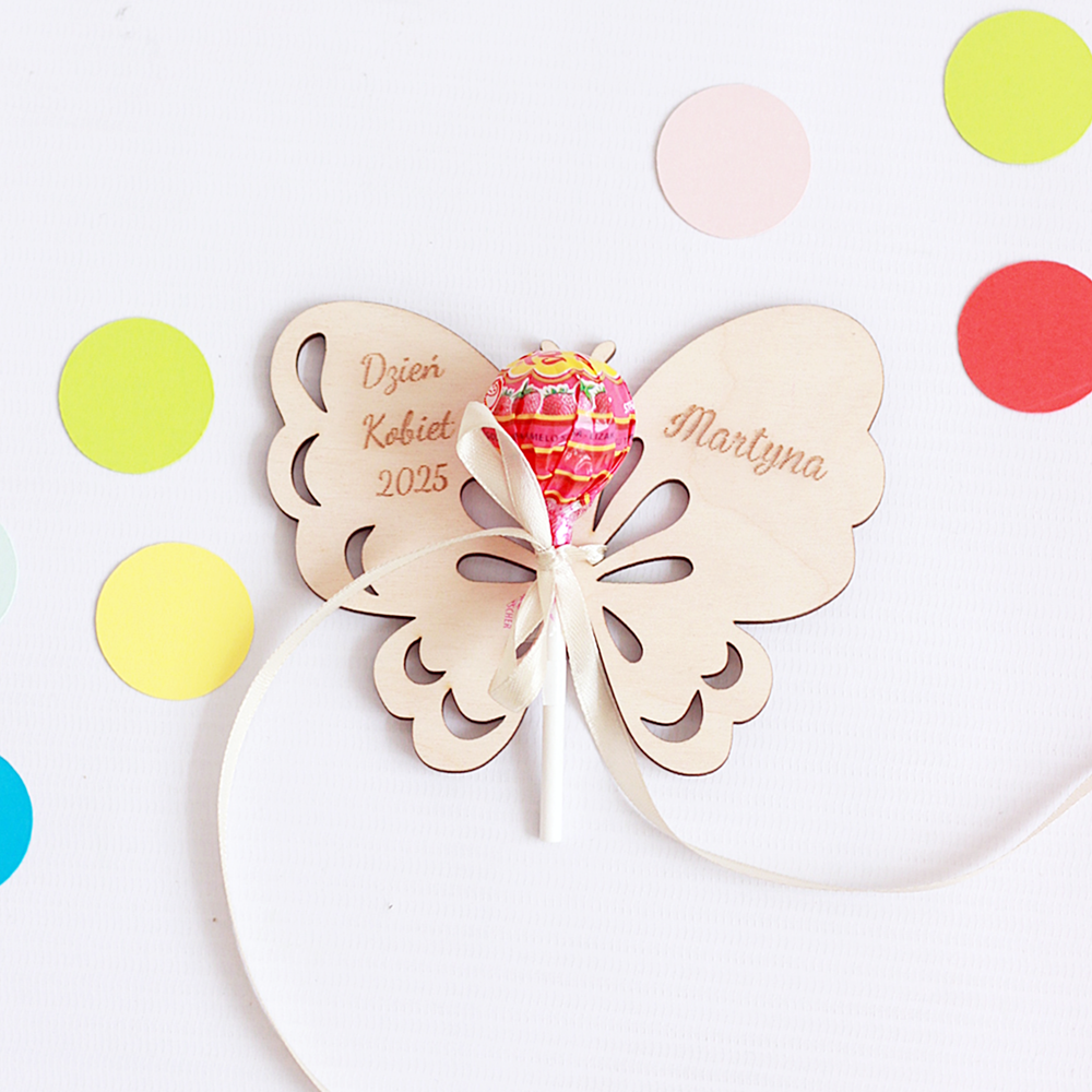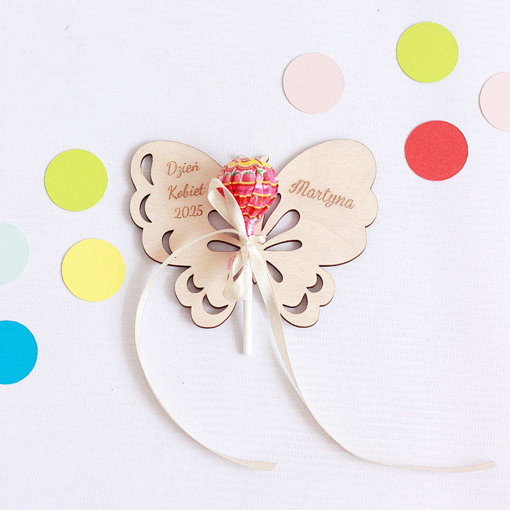 Motylek, motyl na lizaka, sklejka, grawer, personalizacja, dziecko, szkoła, przedszkole- upominek Dzień Kobiet