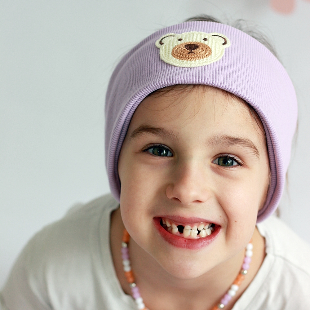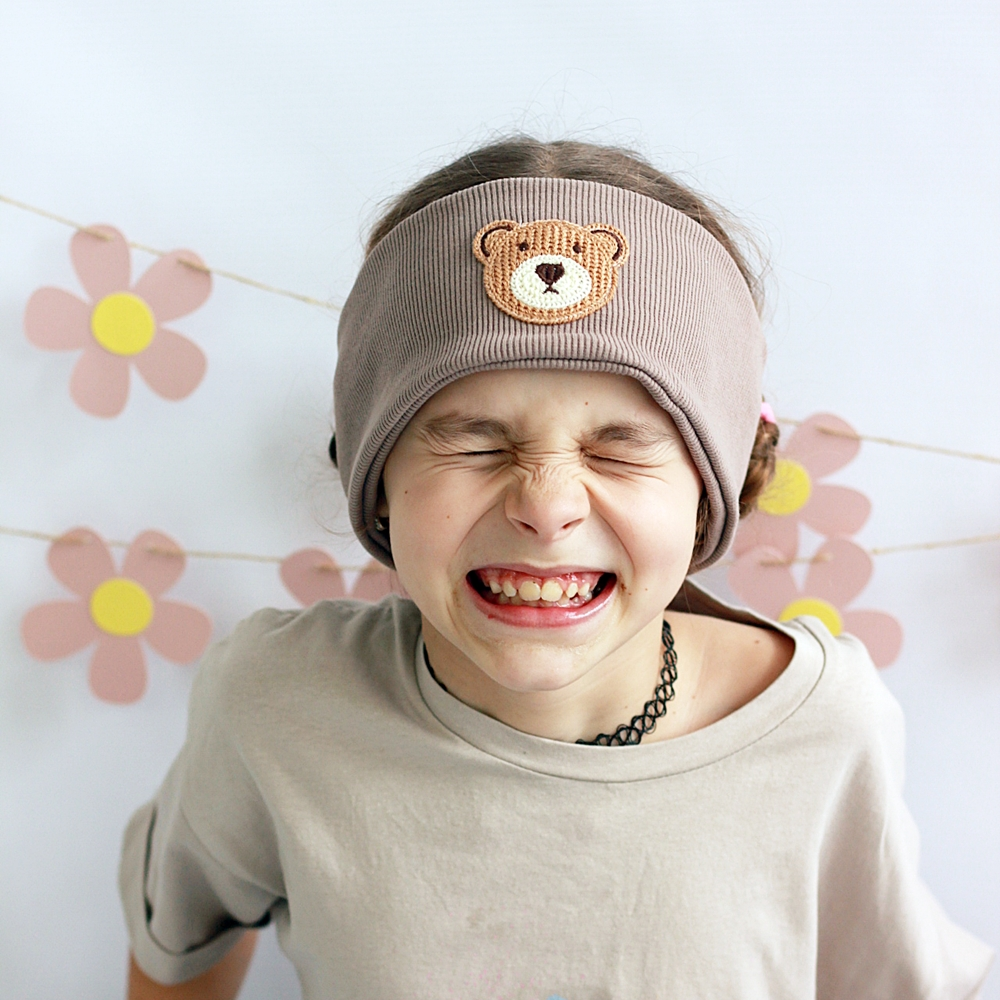 Opaska dziecięca prążek z misiem.