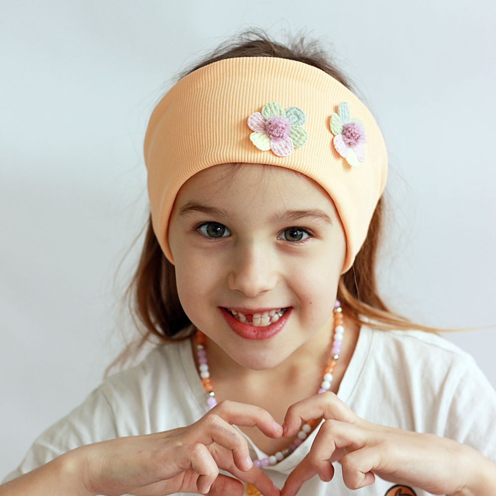 Opaska dziecięca prążek z wielokolorowym kwiatkiem.
