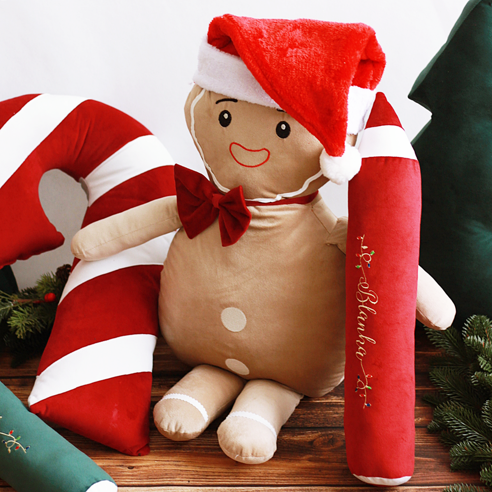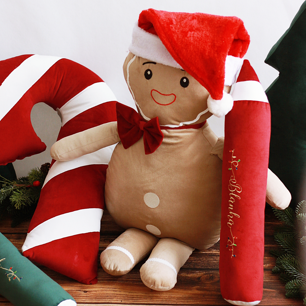 Pluszowy piernik/ ciastek/ ludzik/ maskotka/ 75 cm/ haftowany/ czapa Mikołaja - prezent Mikołajki/ Święta Bożego Narodzenia