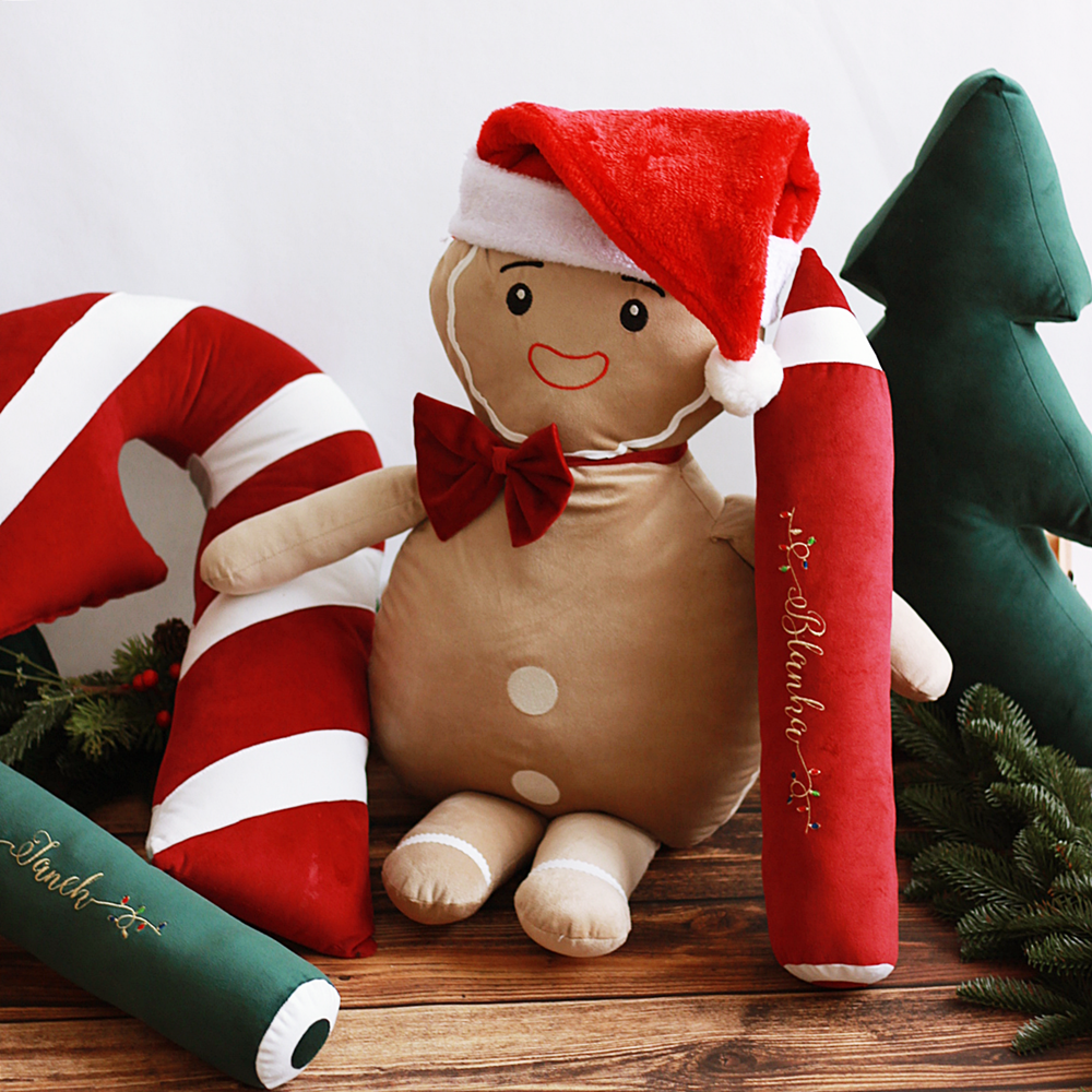 Pluszowy piernik/ ciastek/ ludzik/ maskotka/ 75 cm/ haftowany/ czapa Mikołaja - prezent Mikołajki/ Święta Bożego Narodzenia.