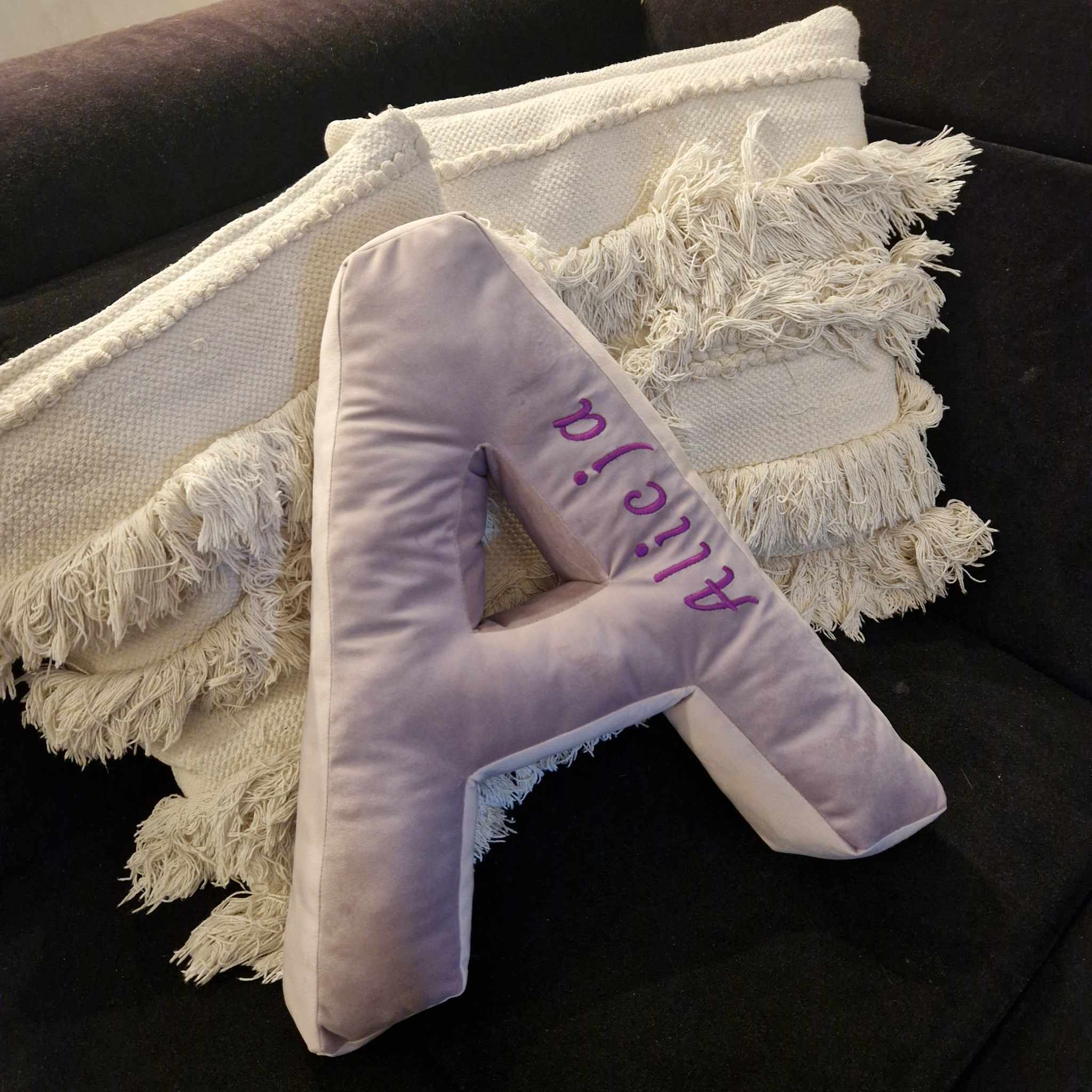 Poduszka, litera duża z weluru - prezent, dziecko