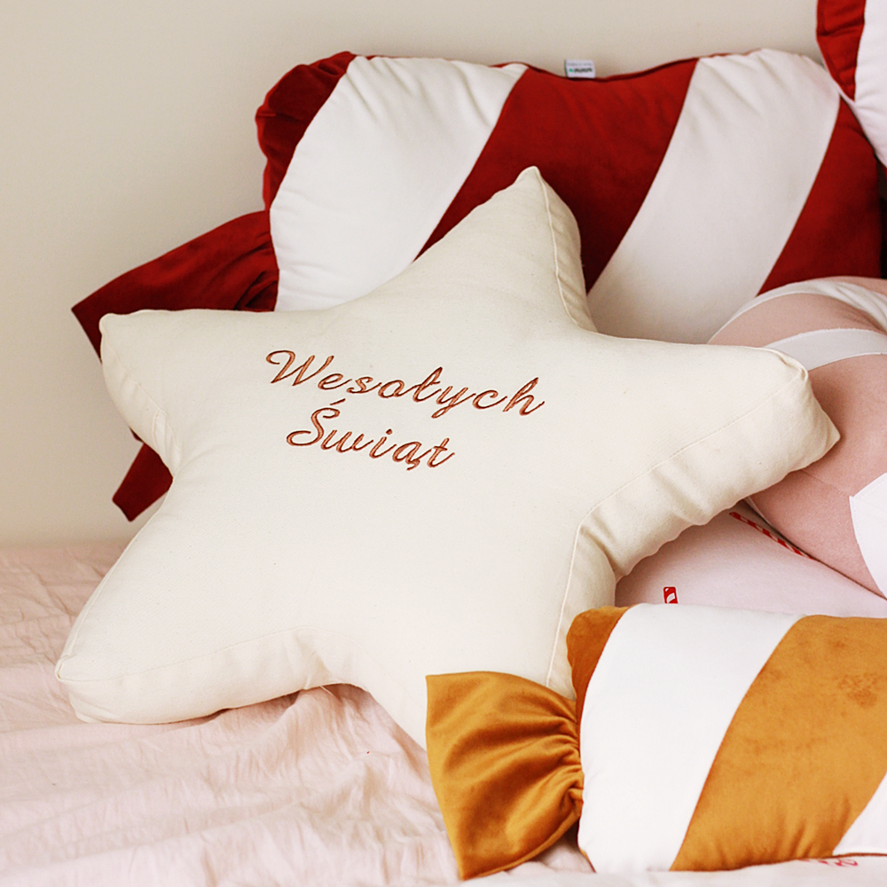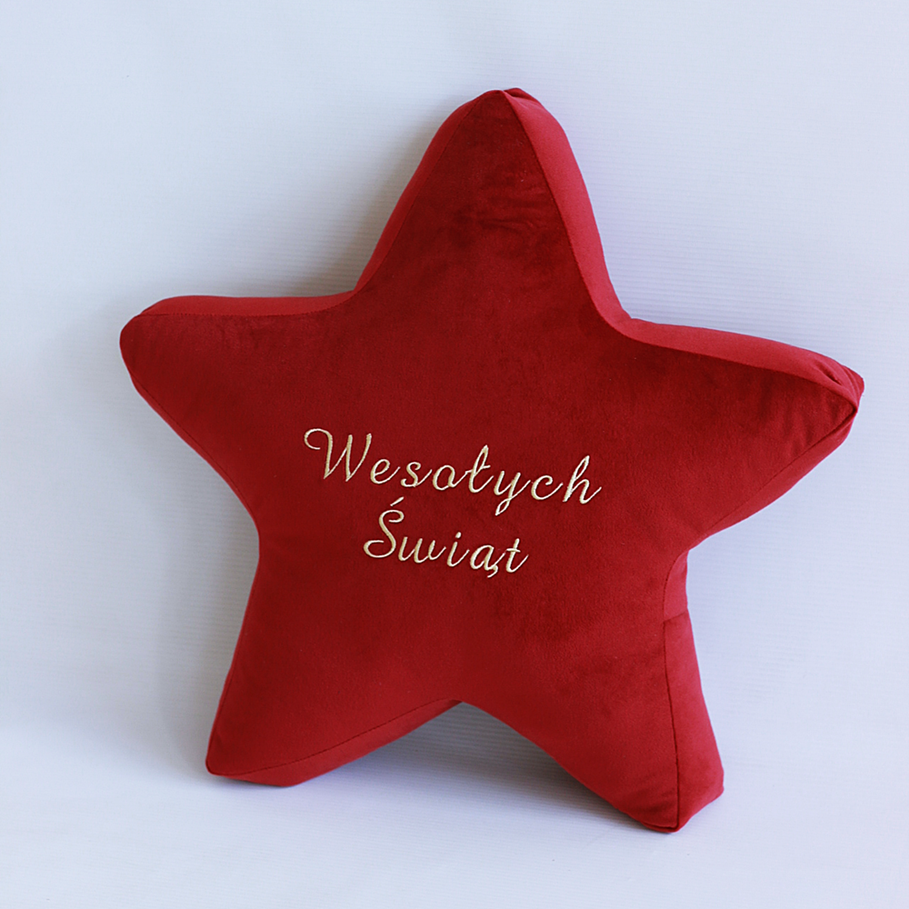 Poduszka/ dekoracja świąteczna gwiazda haft Wesołych Świąt - Święta Bożego Narodzenia