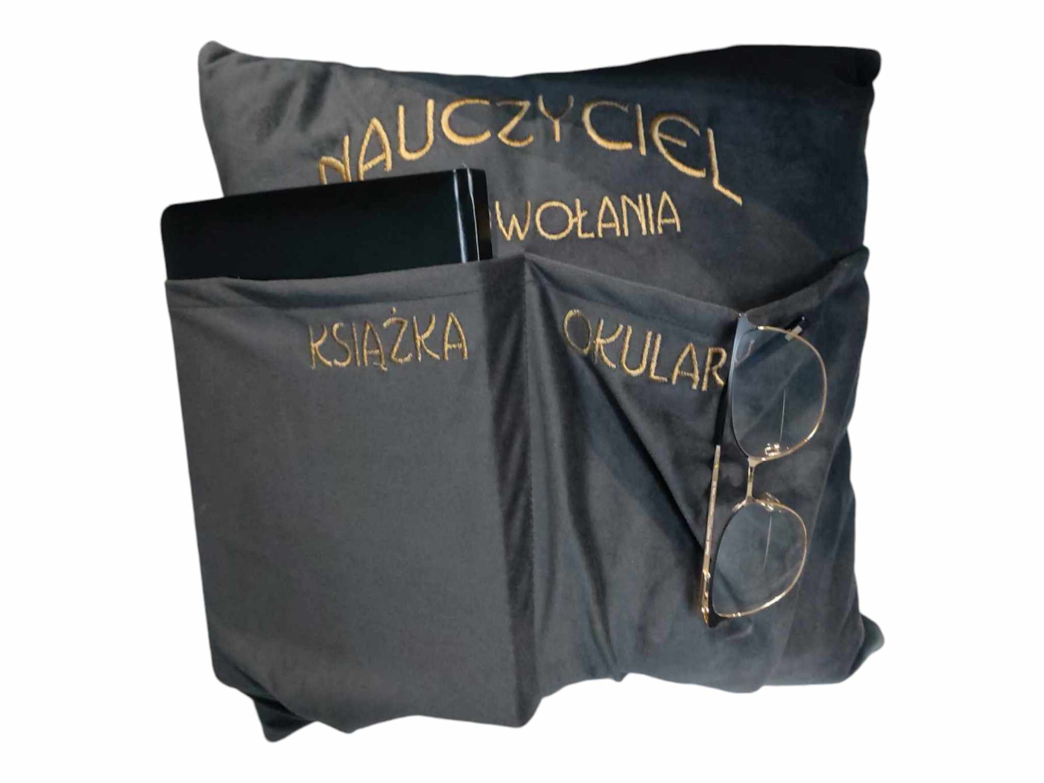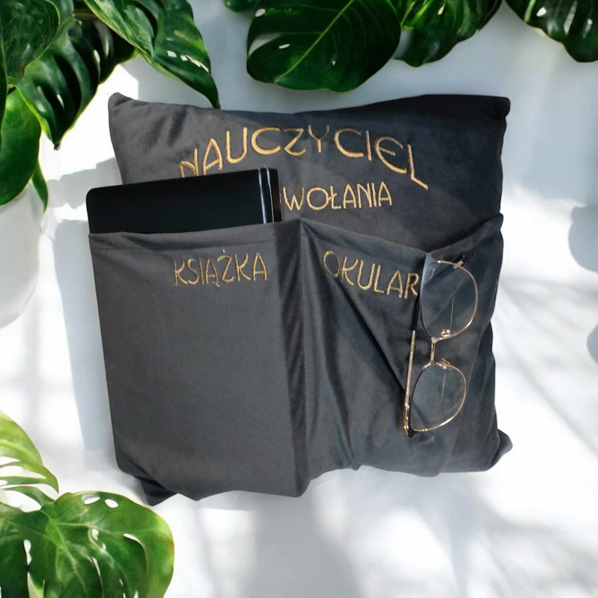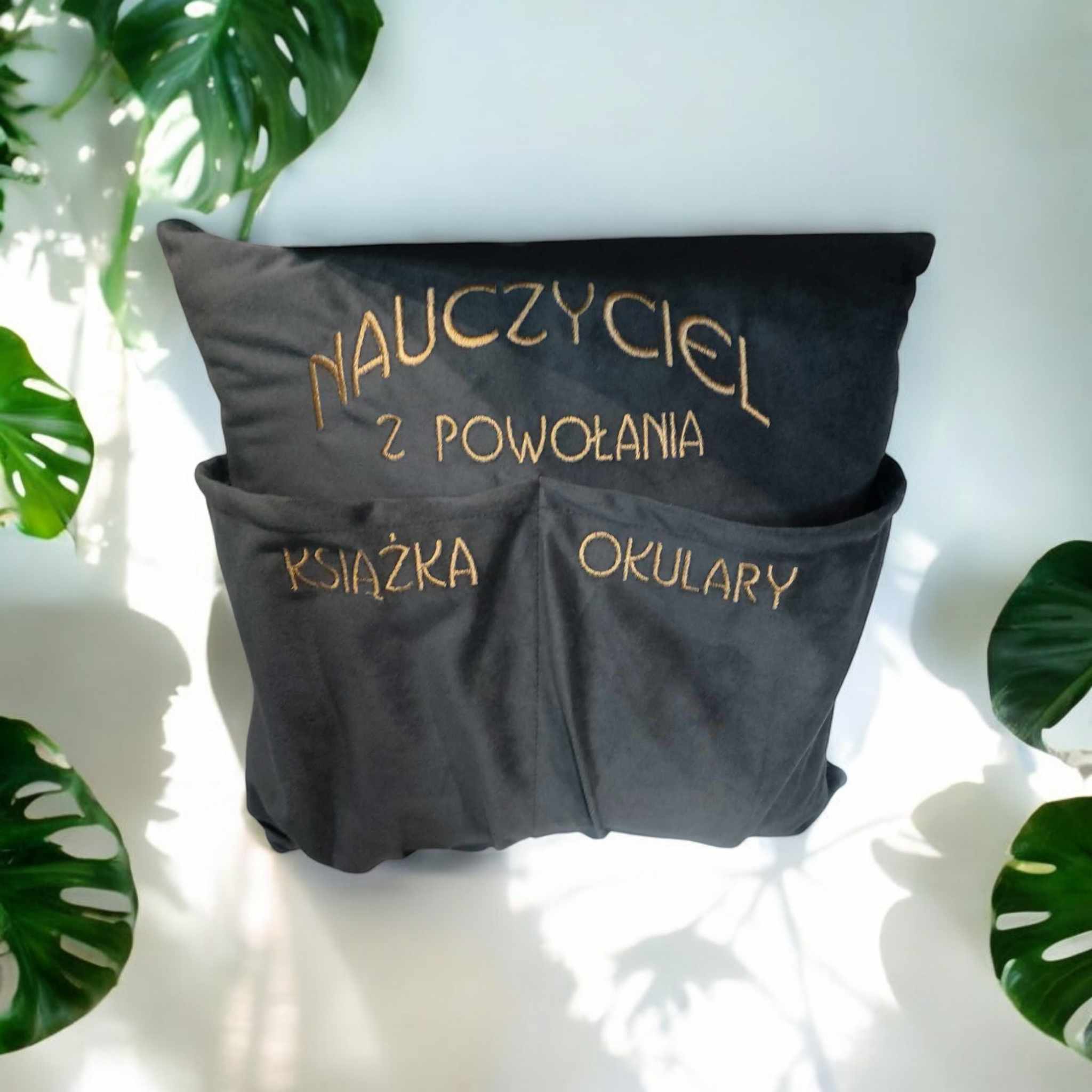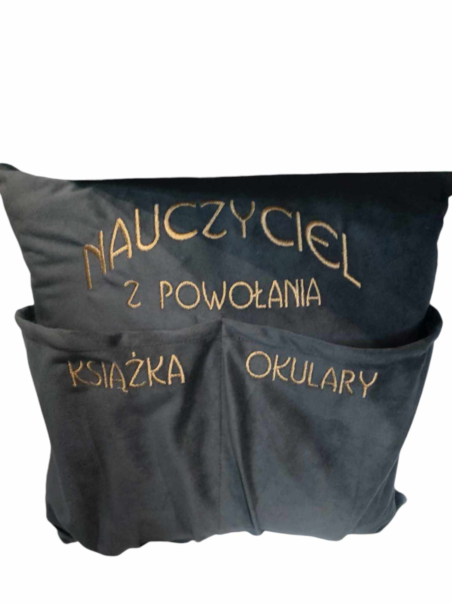 Poduszka haftowana, welur niezbędnik/ organizer - prezent Dzień Nauczyciela / Zakończenie roku szkolnego