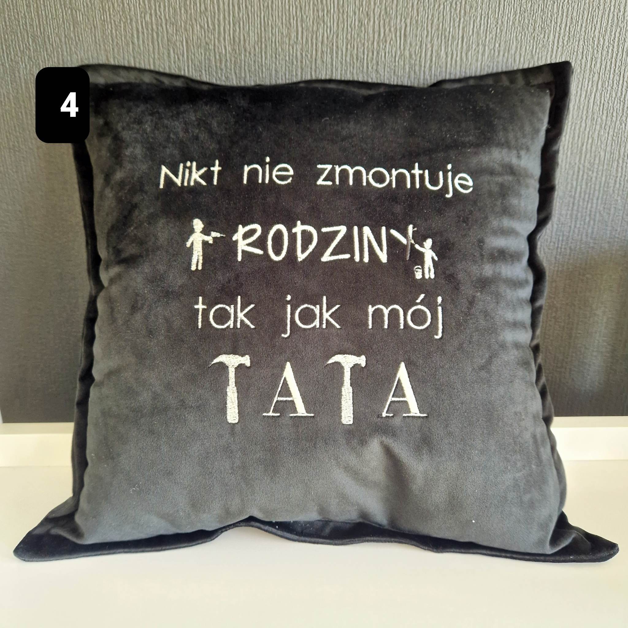 Poduszka haftowana Nikt nie zmontuje rodziny tak jak mój Tata - prezent, urodziny/ Dzień Taty/ Dzień Ojca