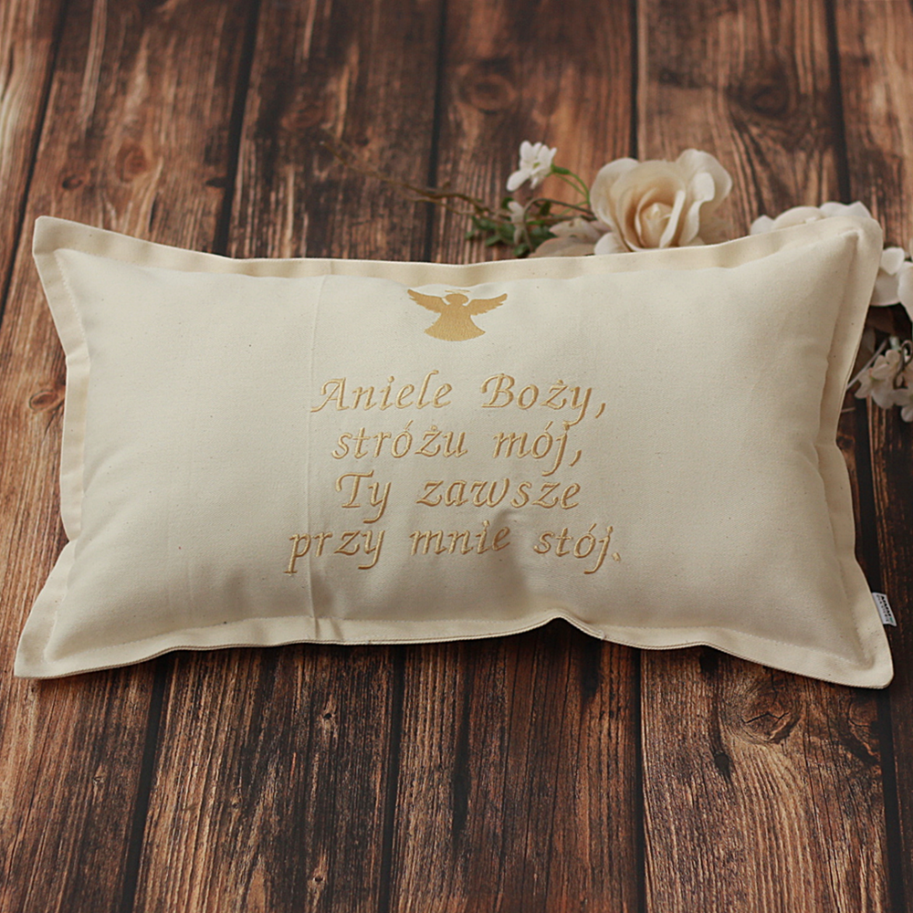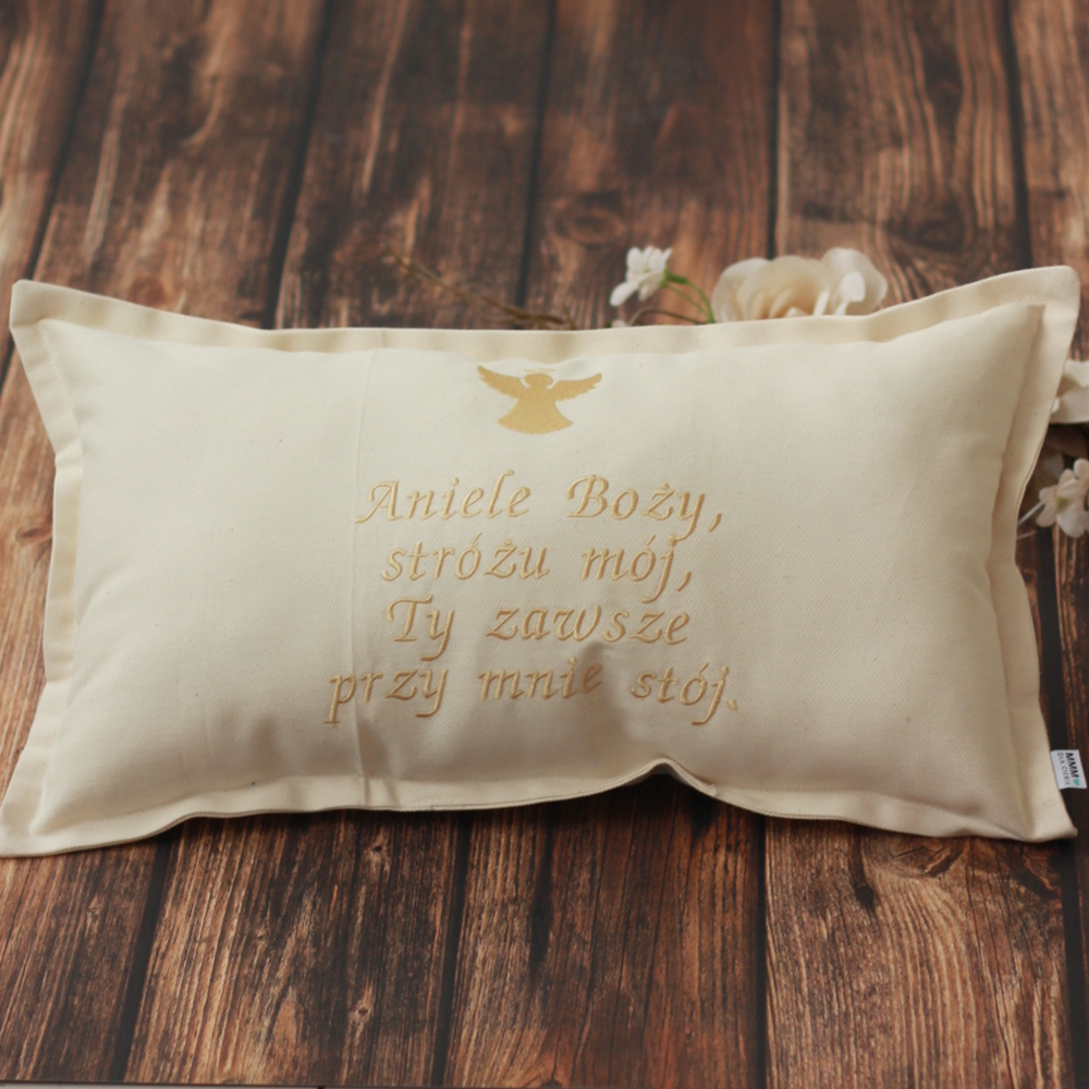 Poduszka haftowana/ haft Aniele Boży/ poduszka z modlitwą - prezent I Komunia Święta/ Chrzest Święty