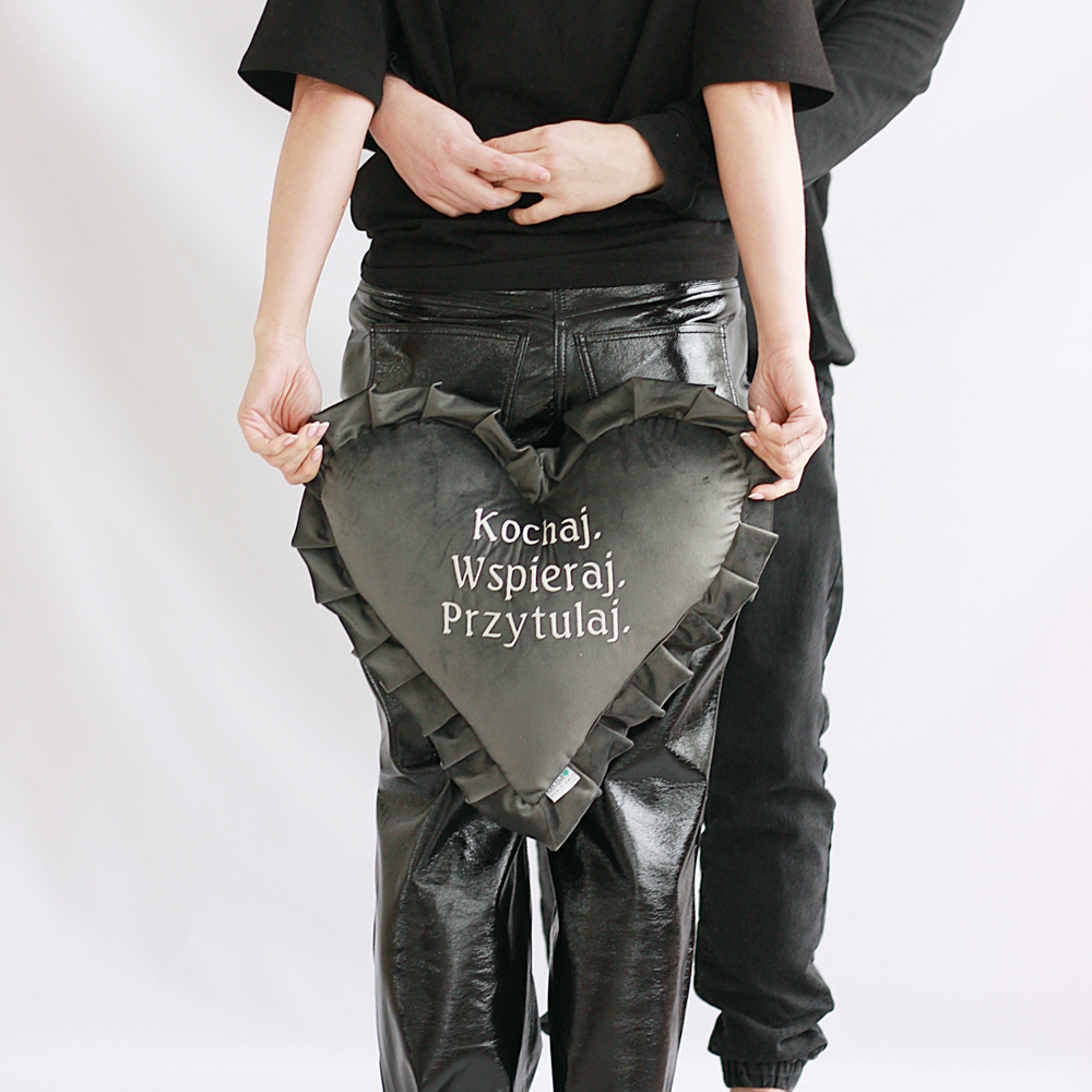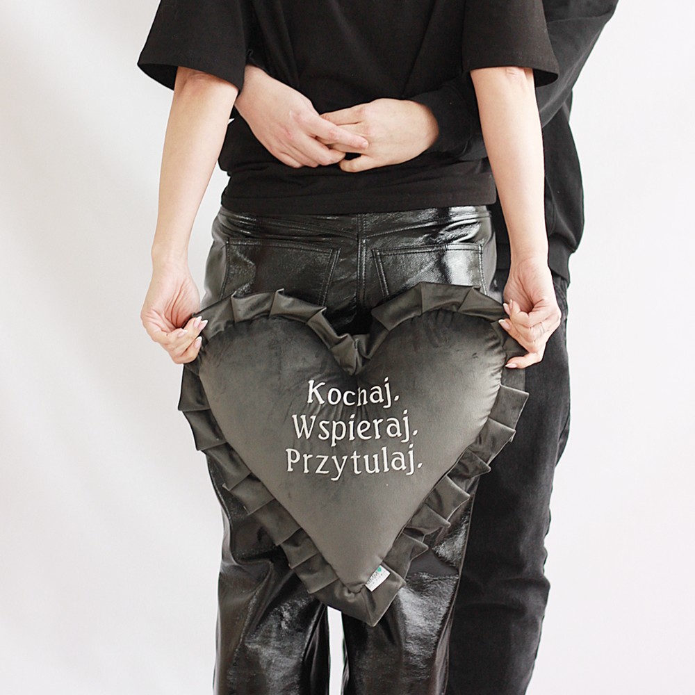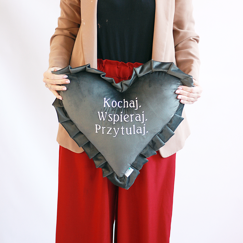 Poduszka haftowana/ haft Kochaj Wspieraj Przytulaj/ serce/ welur - prezent Walentynki