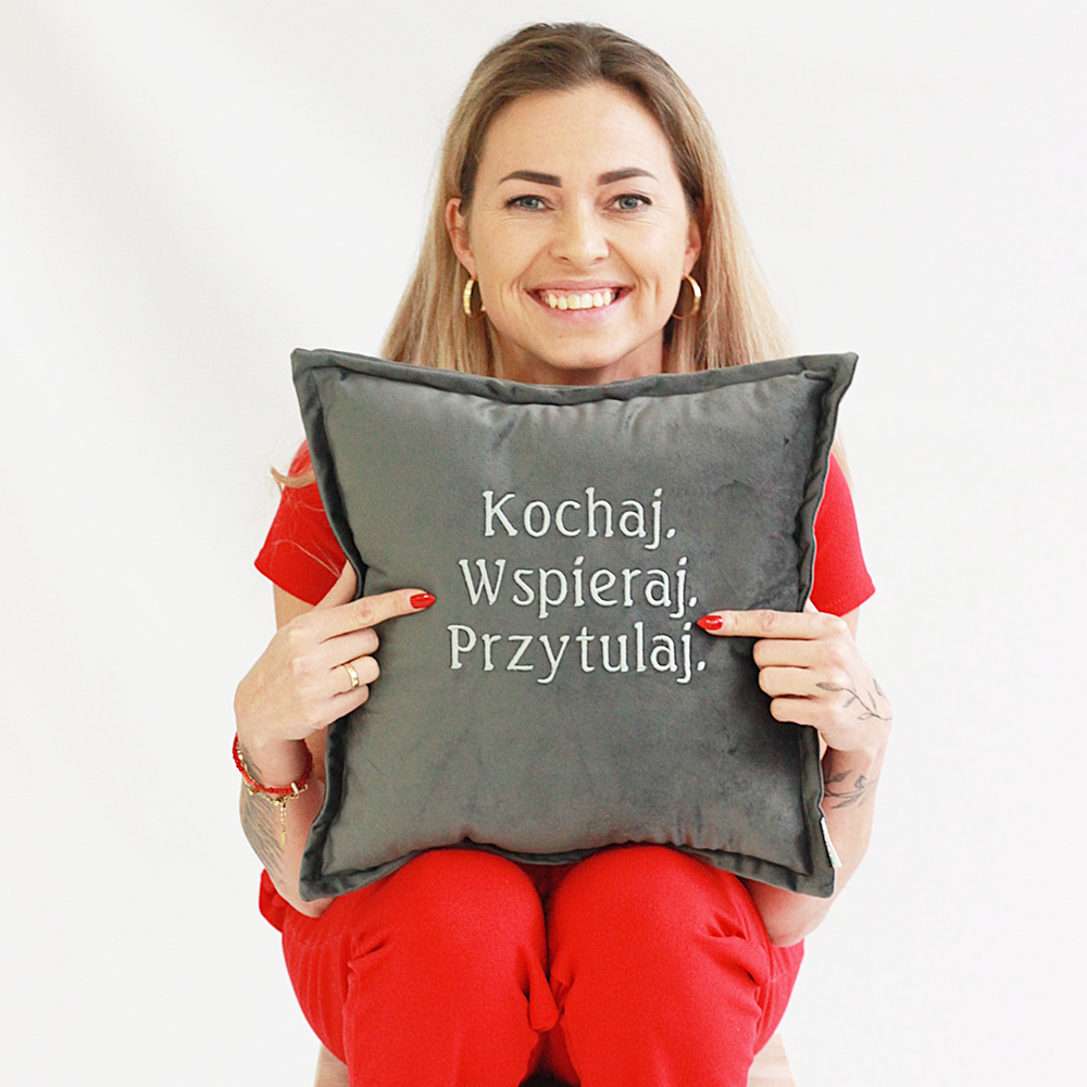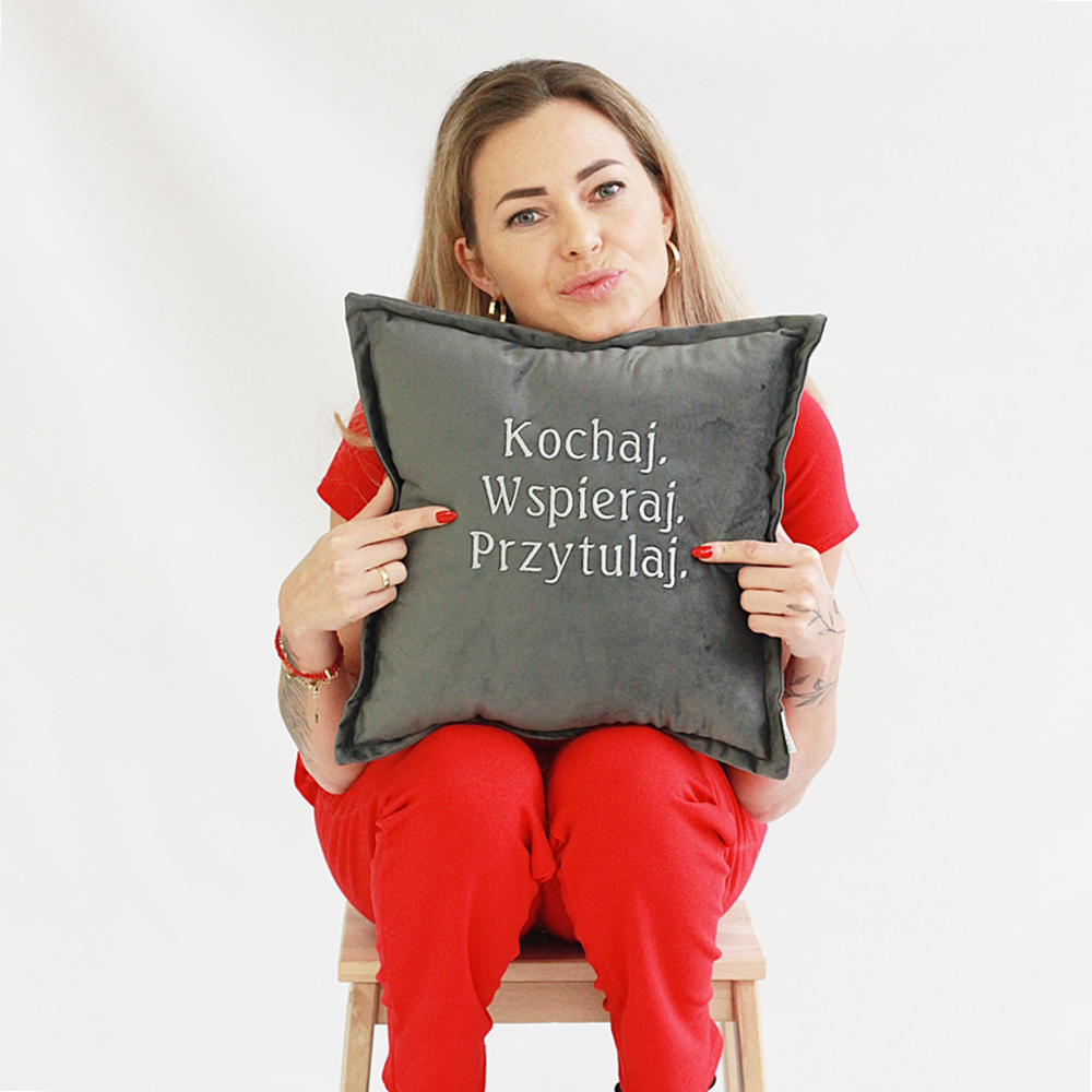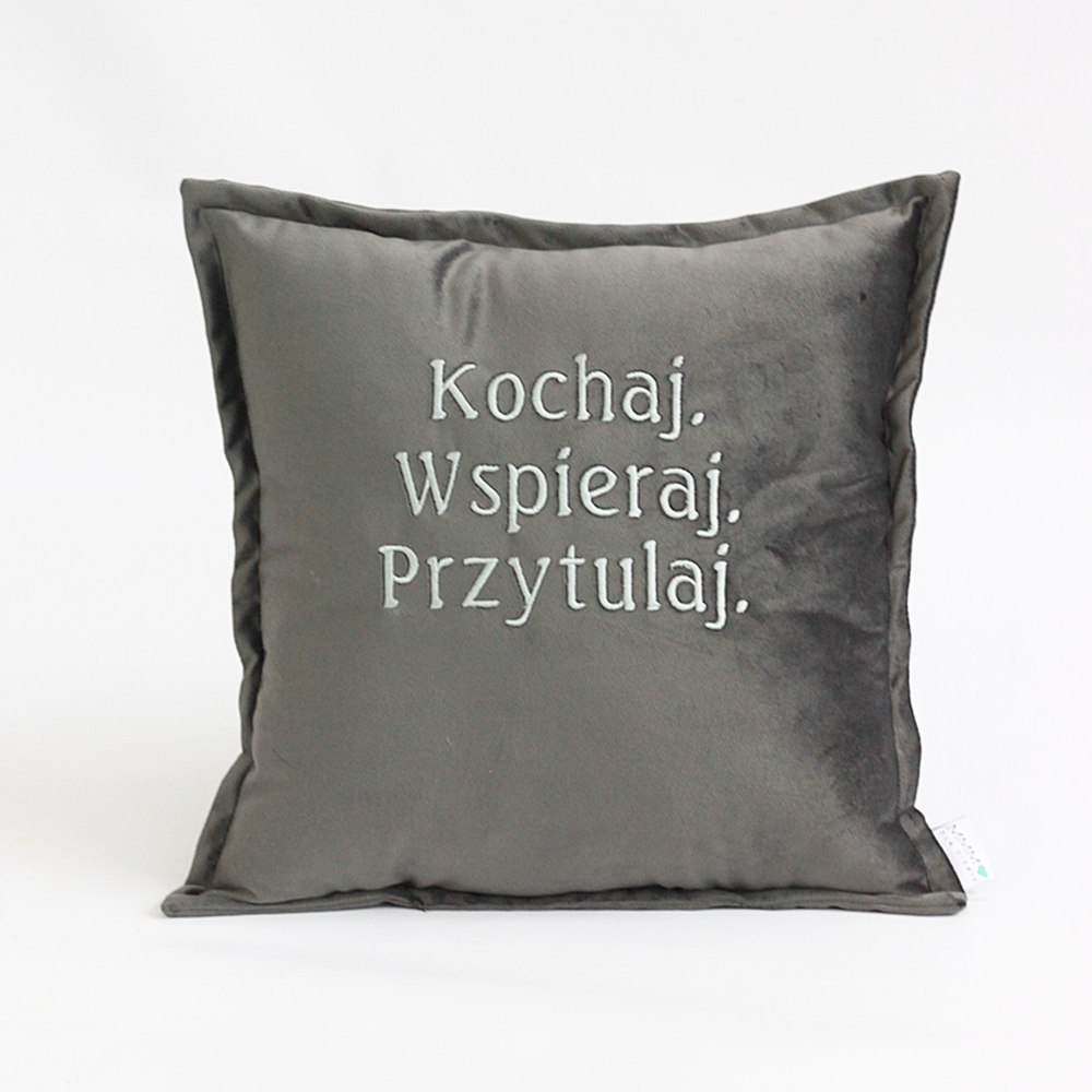 Poduszka haftowana/ haft Kochaj Wspieraj Przytulaj/ welur - prezent Walentynki