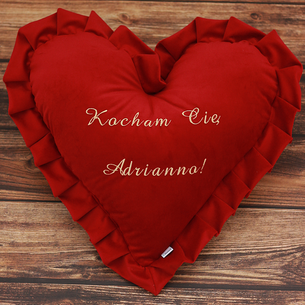 Poduszka Serce z Falbanką to elegancki i stylowy element dekoracyjny, który wprowadzi przytulny klimat do każdego wnętrza. Dzięki możliwości personalizacji, staje się unikalnym i sentymentalnym prezentem, który wywoła uśmiech na twarzy ukochanej osoby.