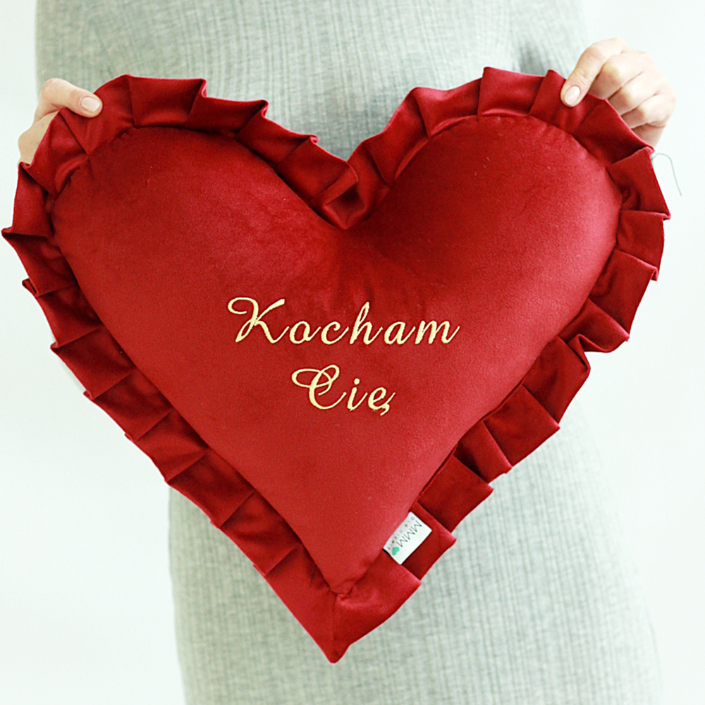 Poduszka haftowana/ haft Kocham Cię/ serce z falbanką - prezent Walentynki