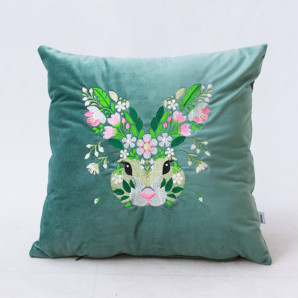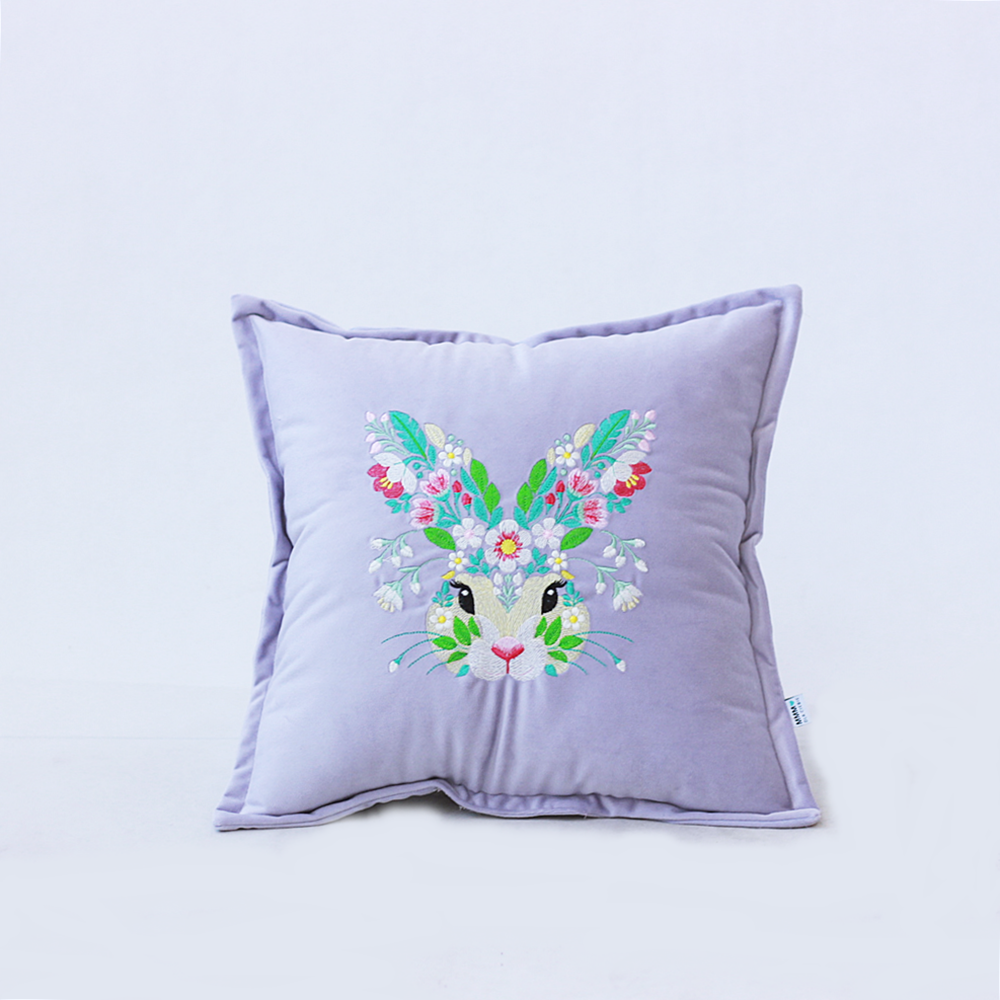 - Elegancki haft – piękny motyw zająca i kwiatów idealnie wpisuje się w wiosenne i wielkanocne dekoracje.