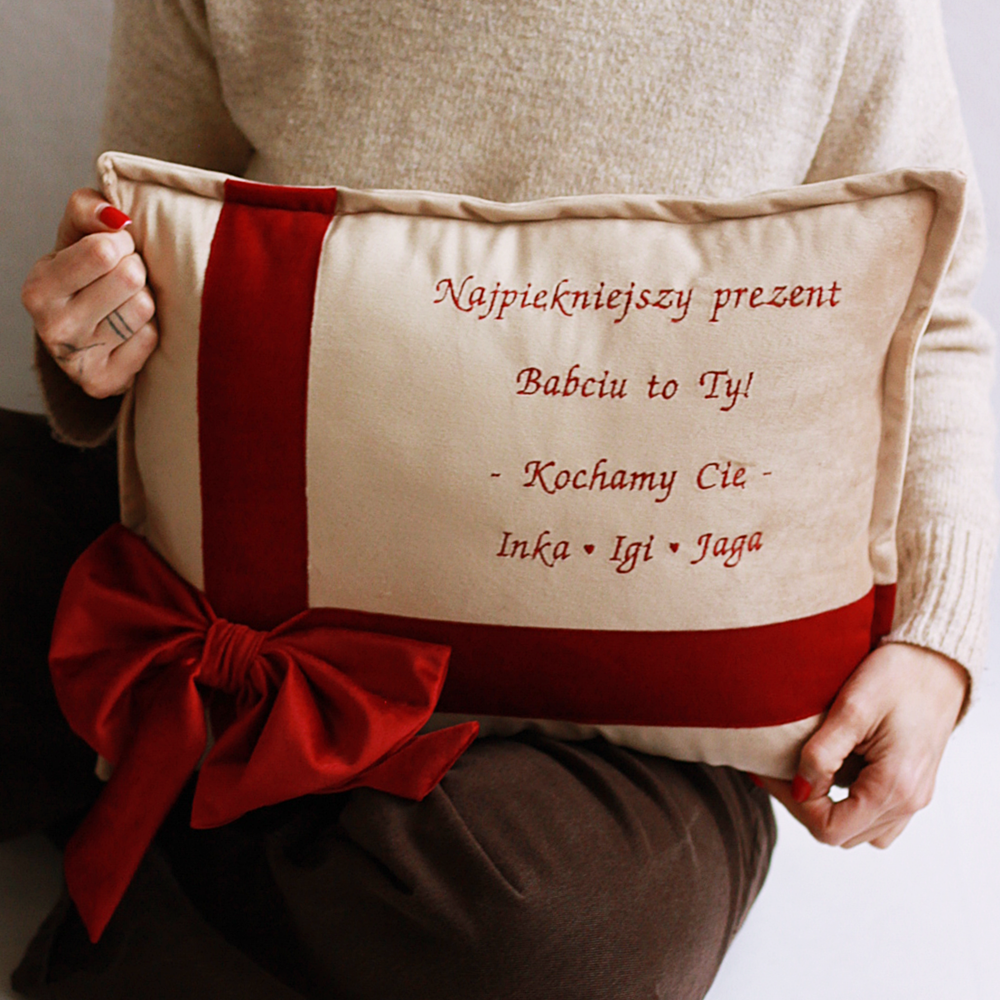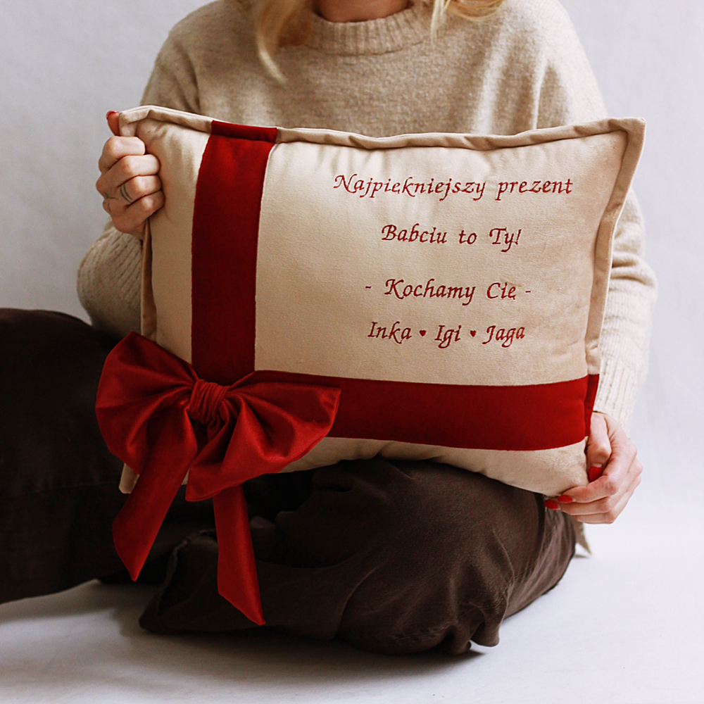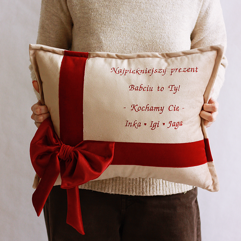 Poduszka haftowana/ welur/ haft Najpiękniejszy prezent Babciu, Dziadku to Ty - wyjątkowy prezent Dzień Babci i Dziadka
