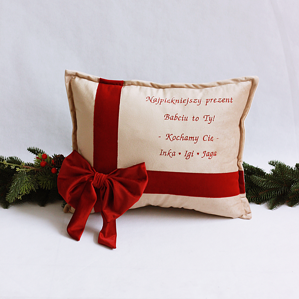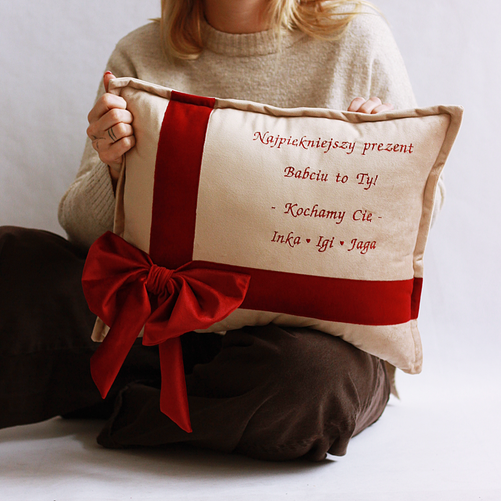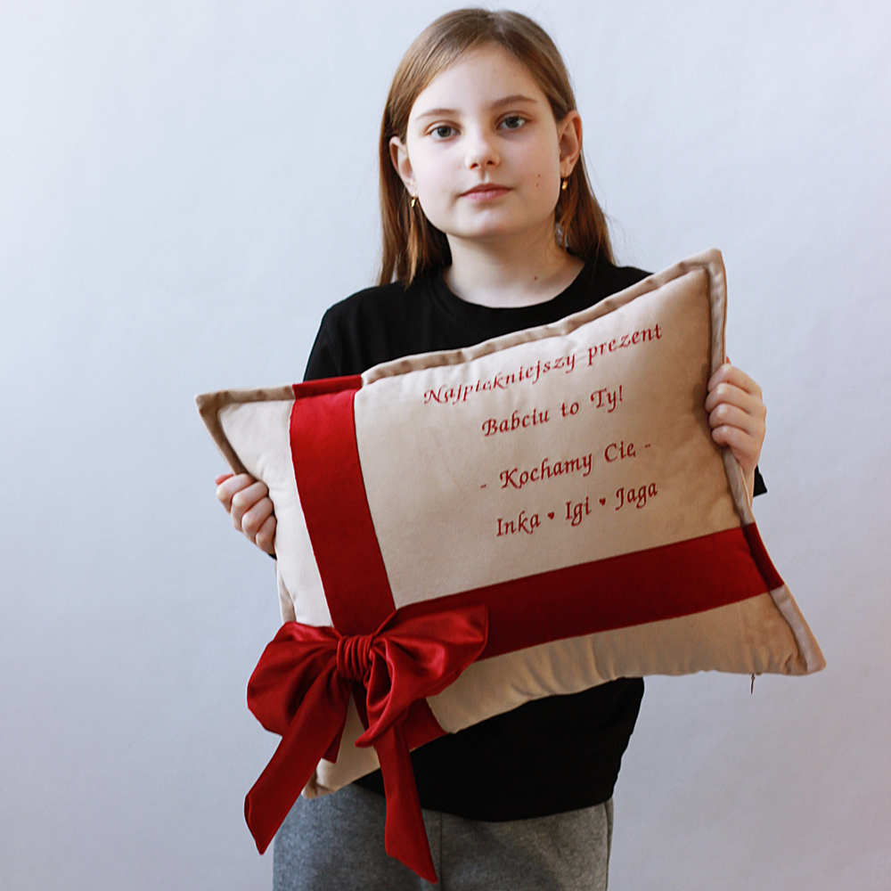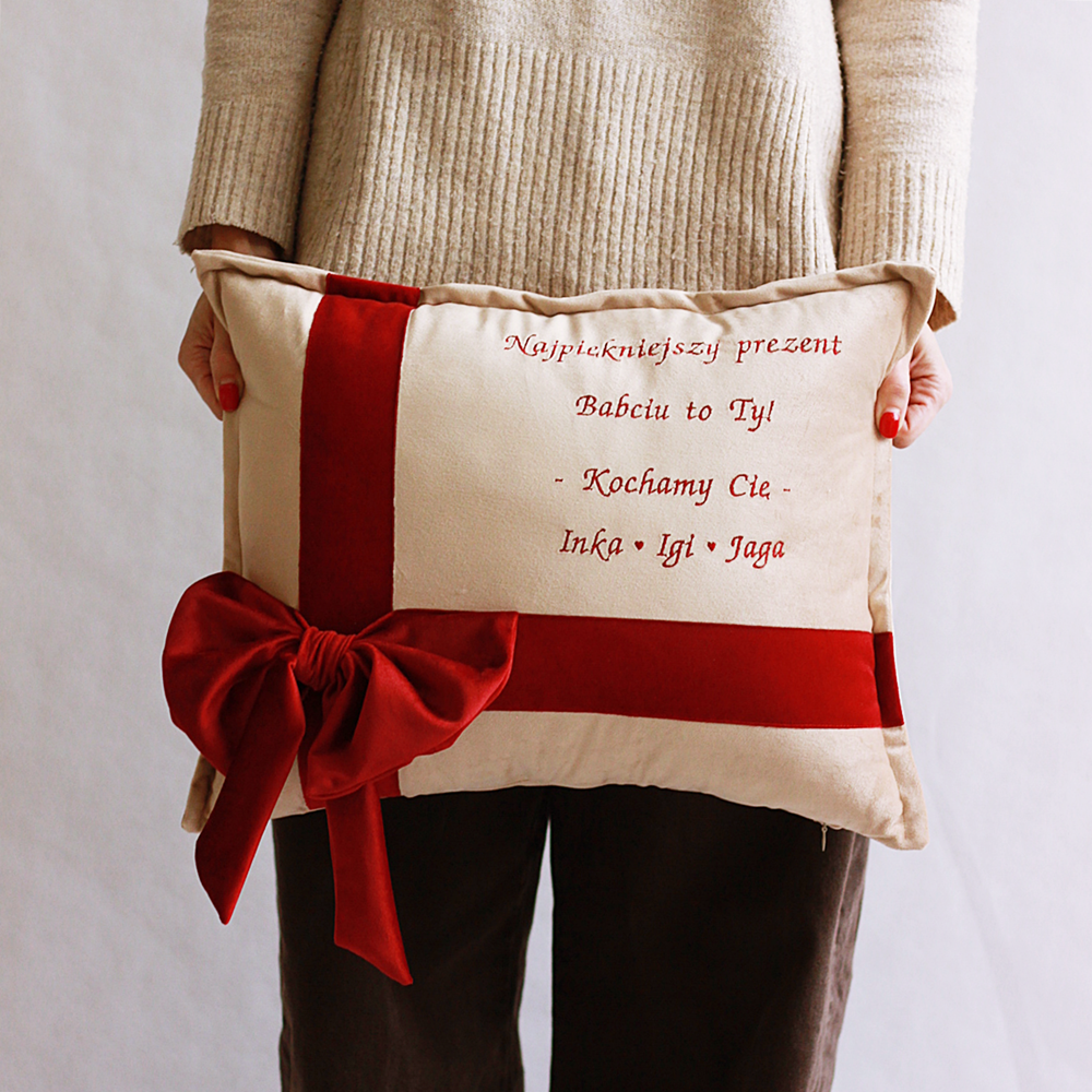 Poduszka haftowana/ welur/ haft Najpiękniejszy prezent Babciu, Dziadku to Ty - wyjątkowy prezent Dzień Babci i Dziadka
