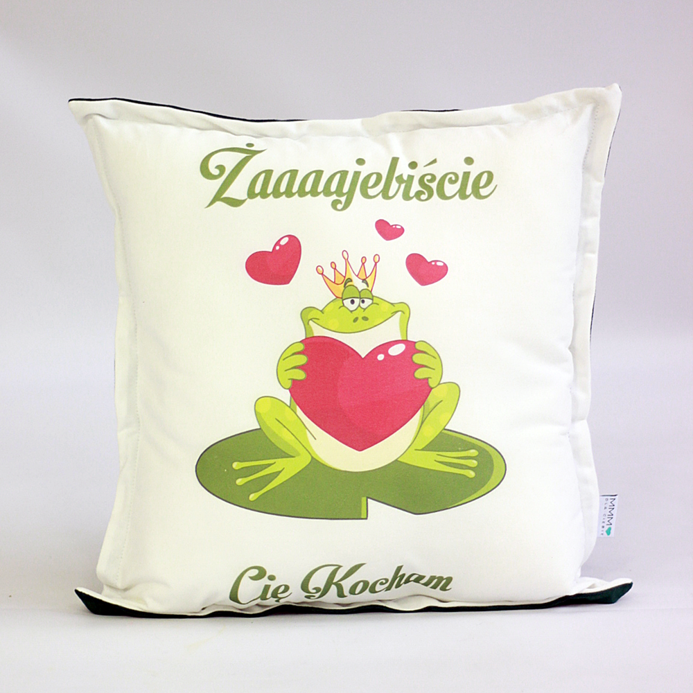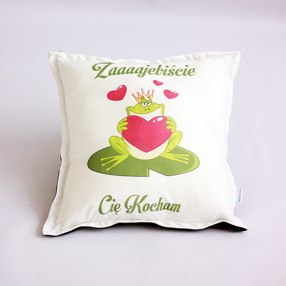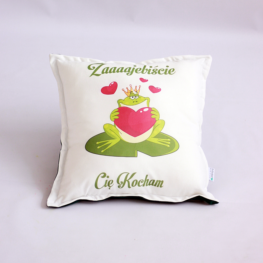 Poduszka nadruk żaba, napis Żajebiście Cię Kocham - prezent Walentynki