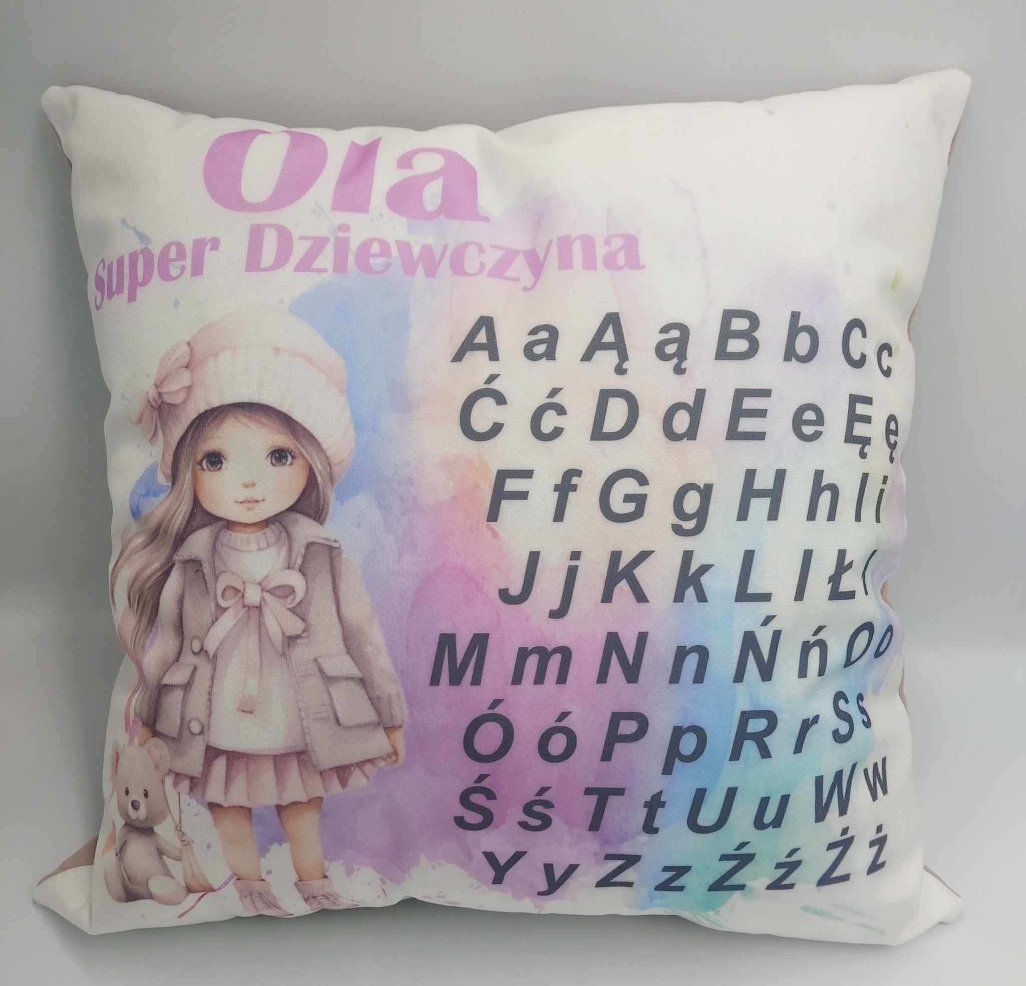 Poduszka personalizowana z alfabetem, nadruk, laleczka, dziewczynka - prezent Dzień Dziecka/ Dzień Kobiet