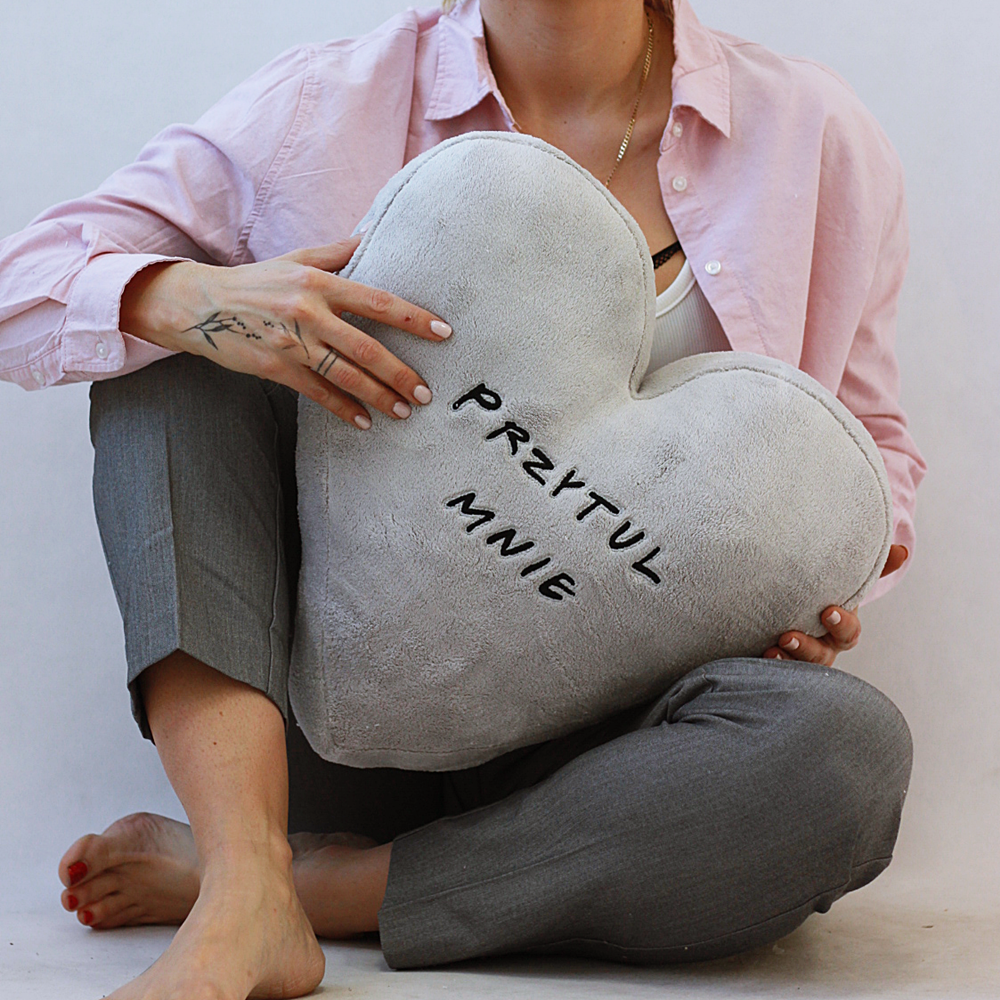 Poduszka serca/ poduszka haftowana/ poduszka z Twoim tekstem/ mięciutka podusia - wyjątkowy prezent dla zakochanych/ Walentynki