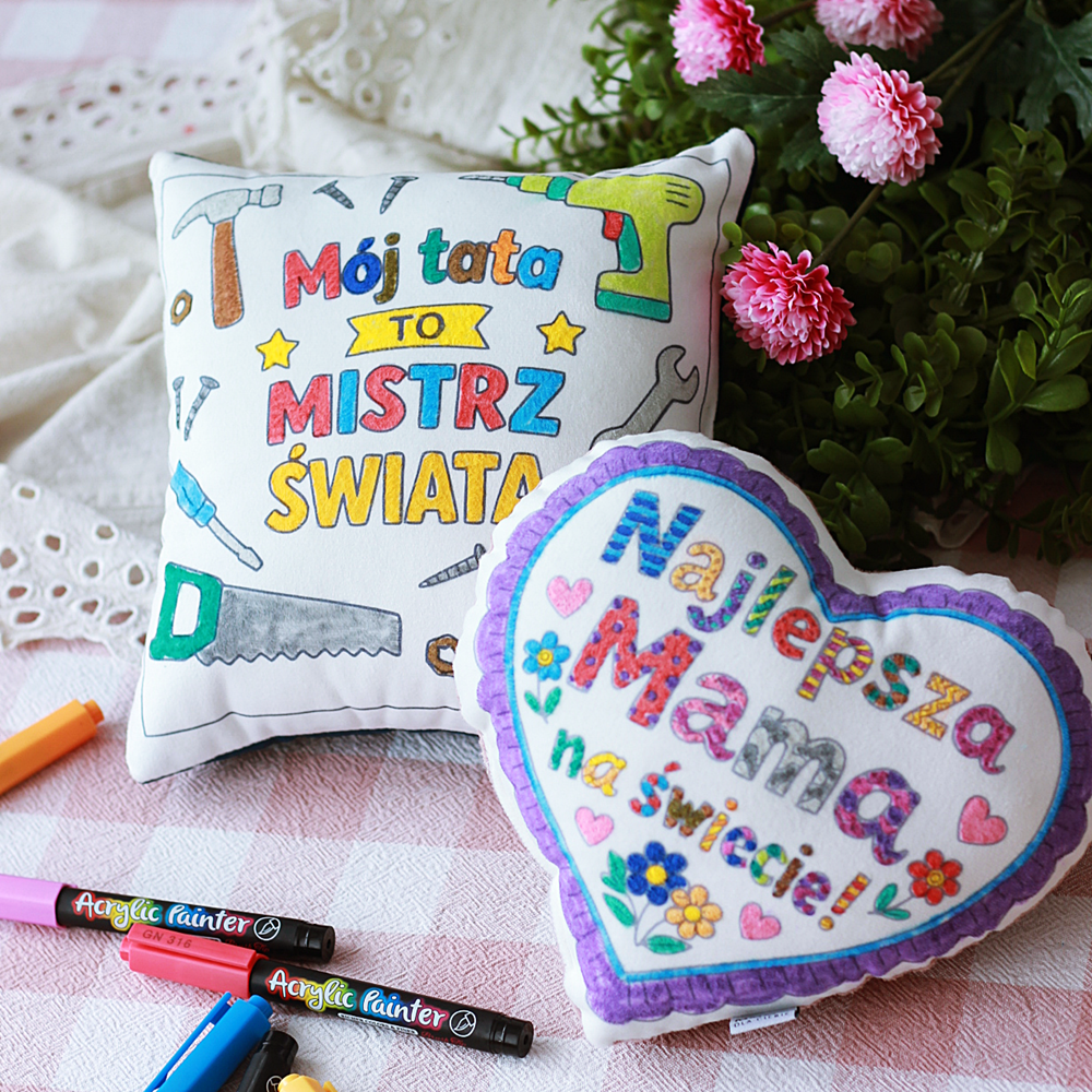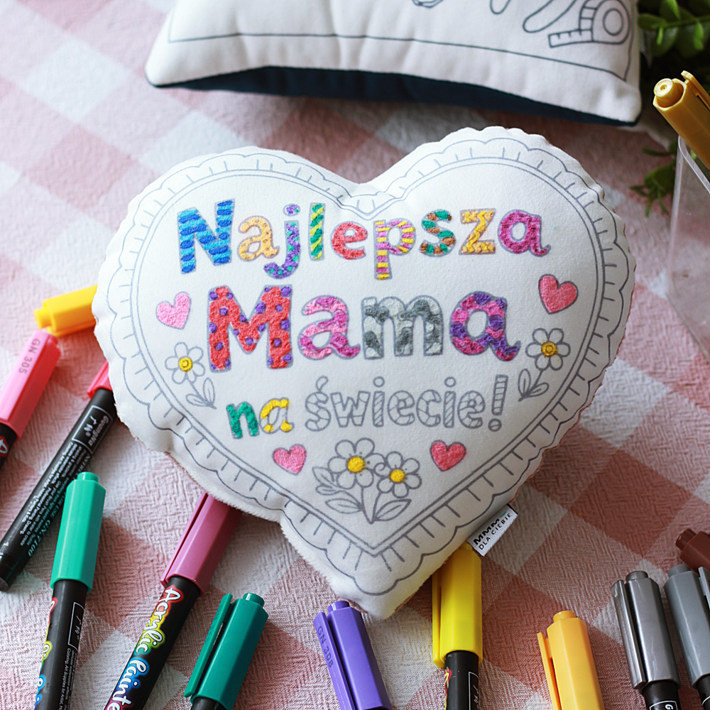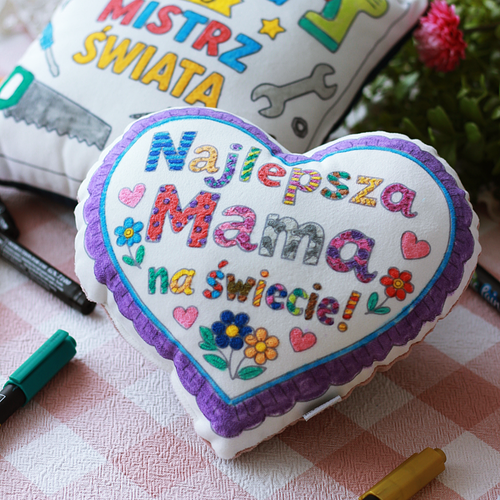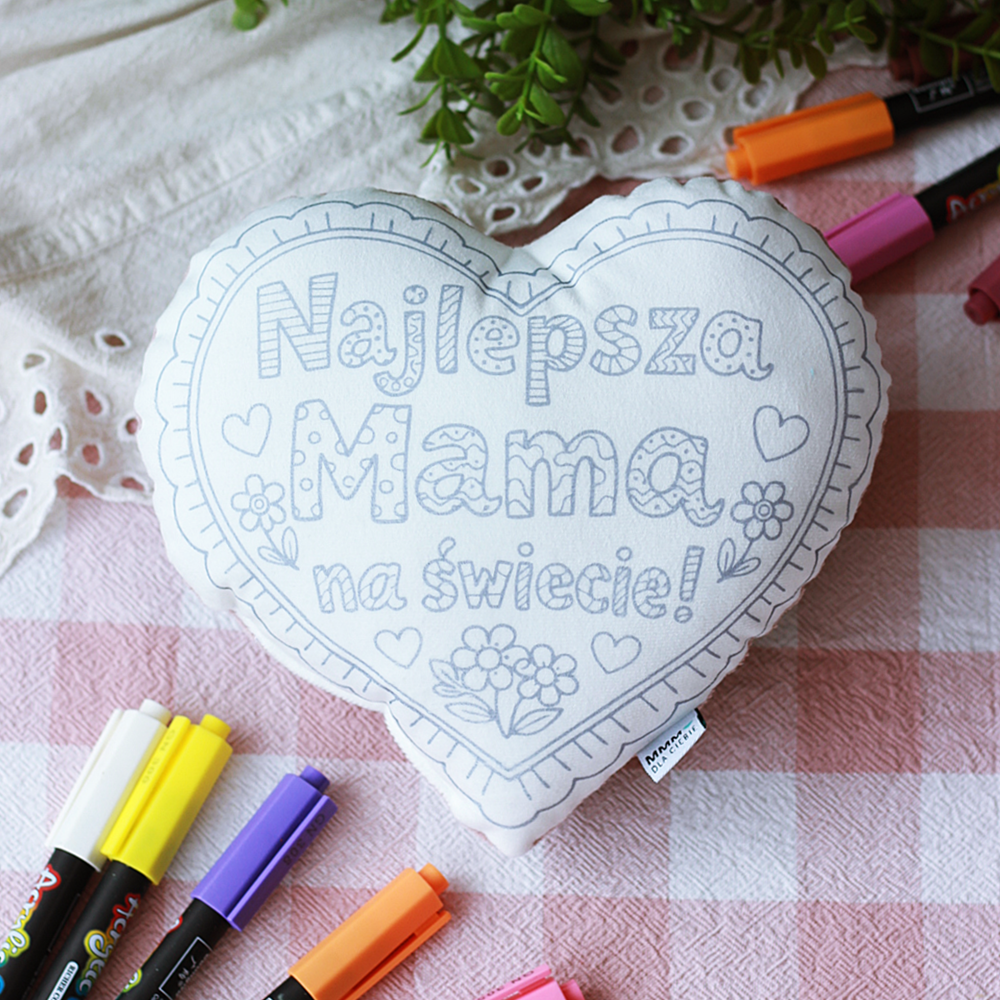 Poduszka serce na Dzień Mamy, Matki/ poduszka kolorowanka/ zestaw kreatywny dla dzieci - prezent na Dzień Mamy