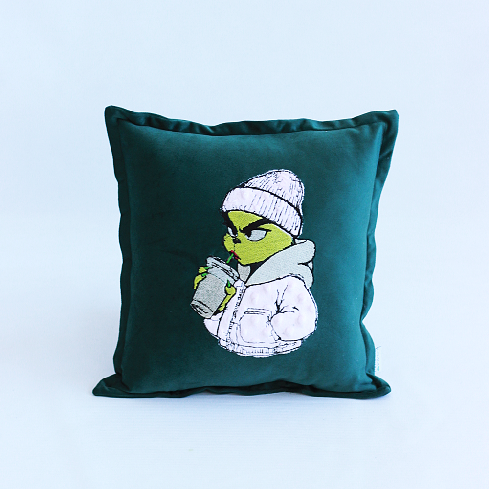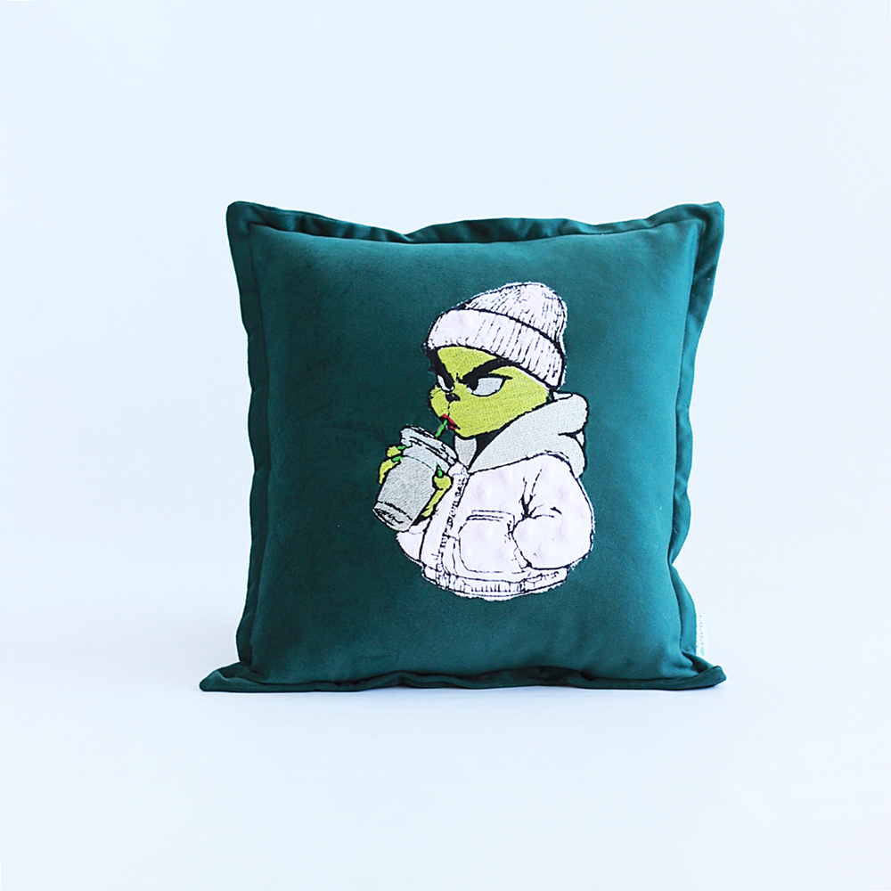 Poduszka świąteczna/ haftowana/ haft Grinch - dekoracja, prezent Święta Bożego Narodzenia