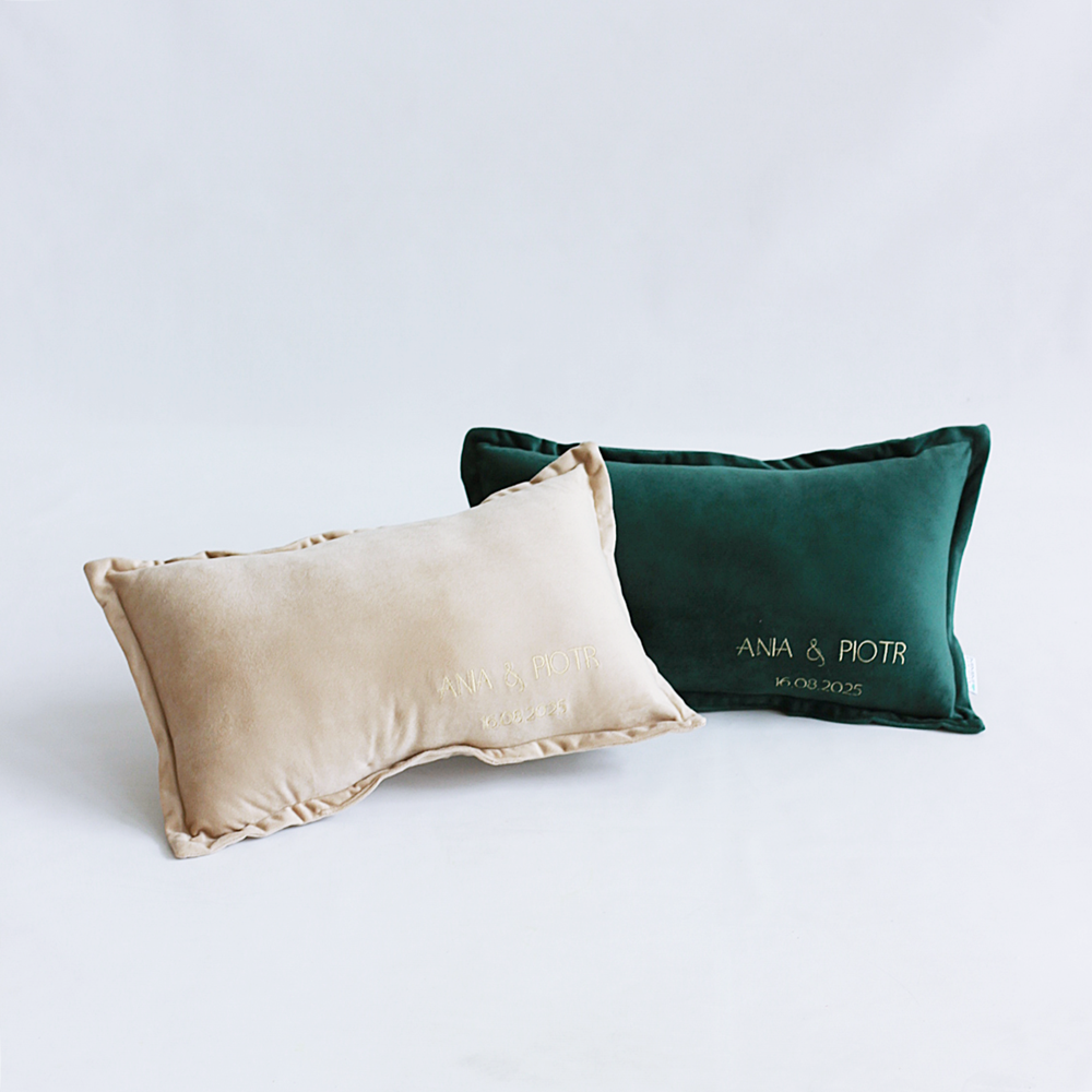 Poduszka welur/haft/personalizacja – elegancki, personalizowany prezent na Ślub lub Wesele. Idealna jako dekoracja i pamiątka na całe życie.