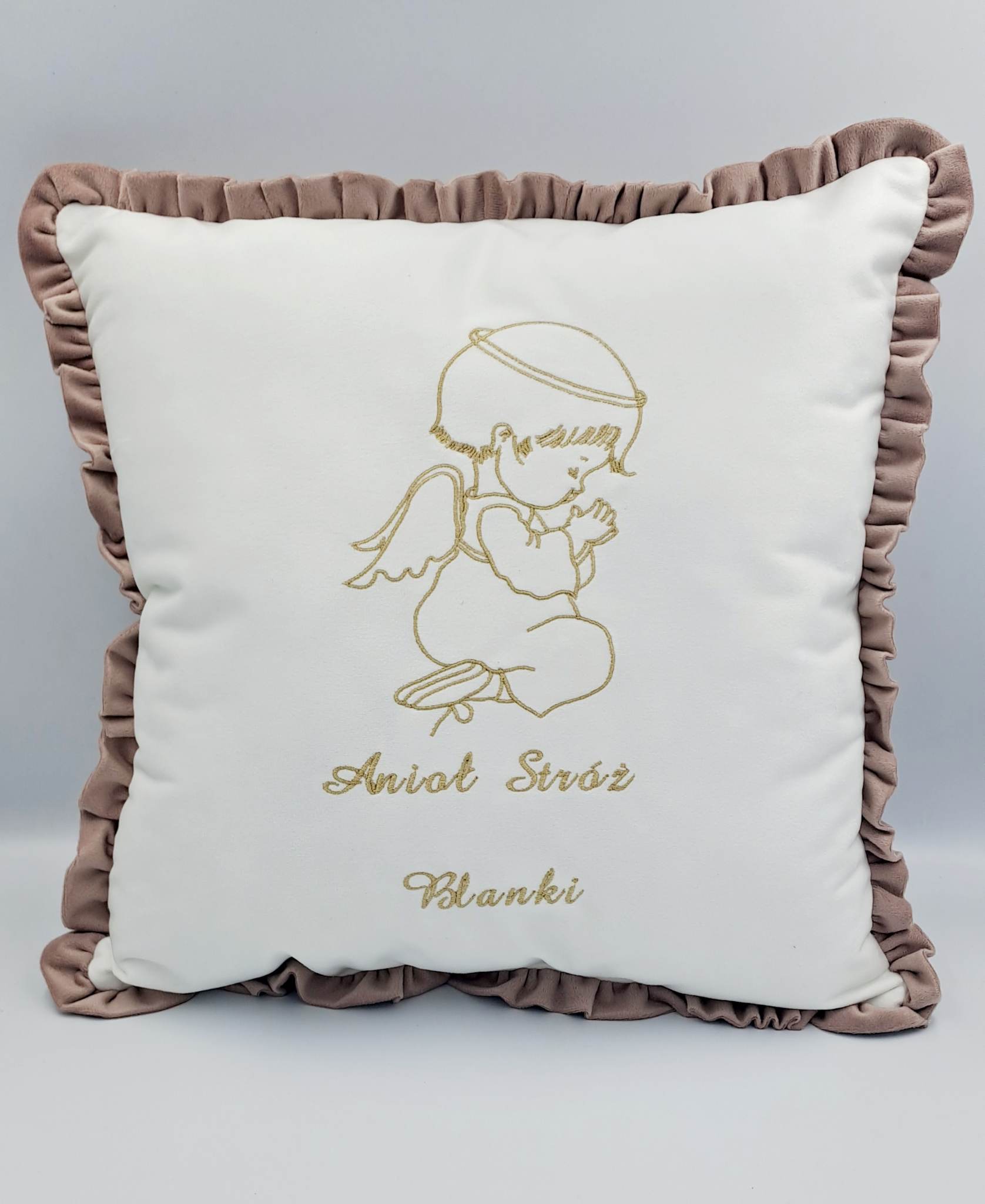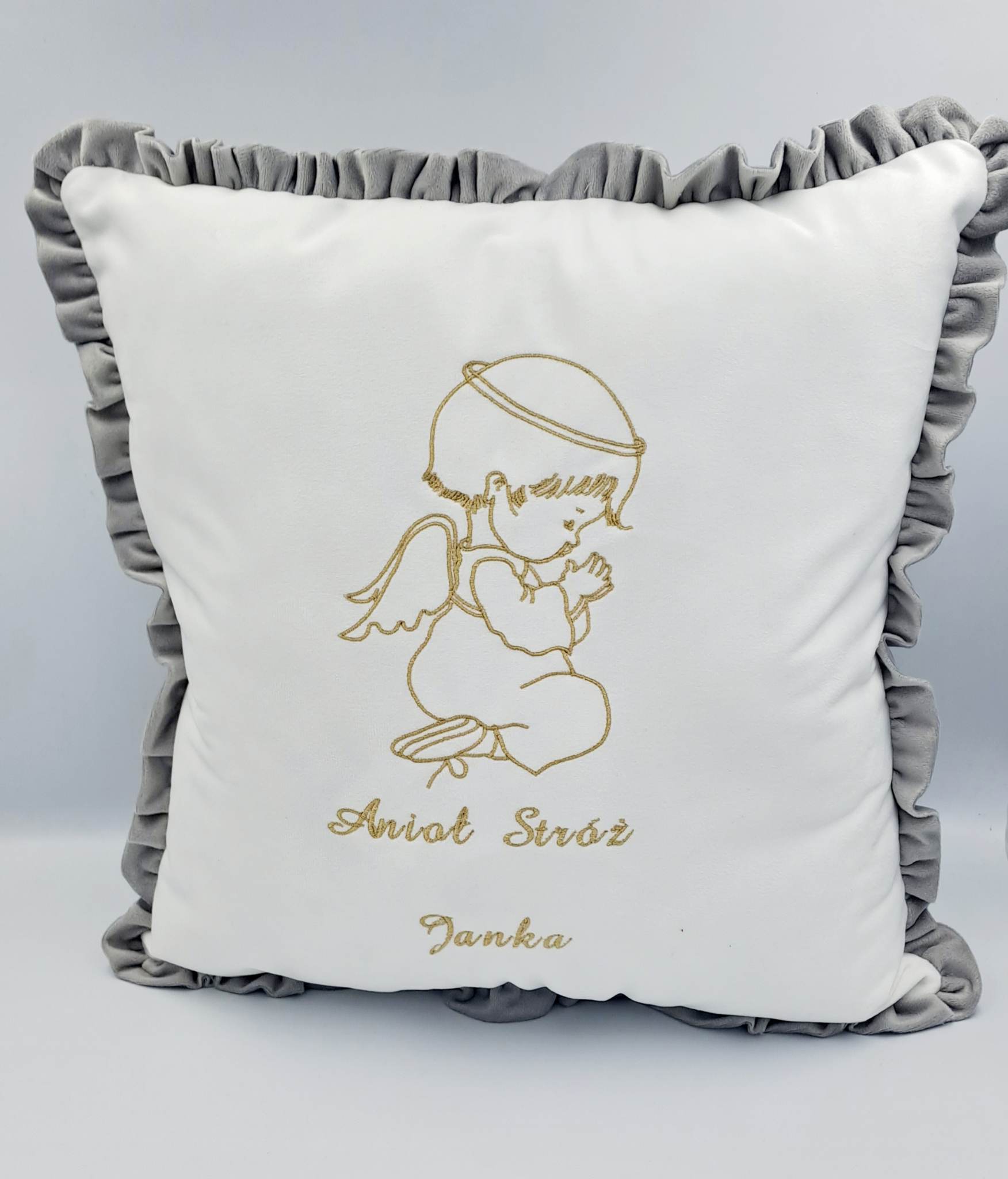 Poduszka z haftem aniołka – unikalny prezent na I Komunię Święta lub Chrzest
