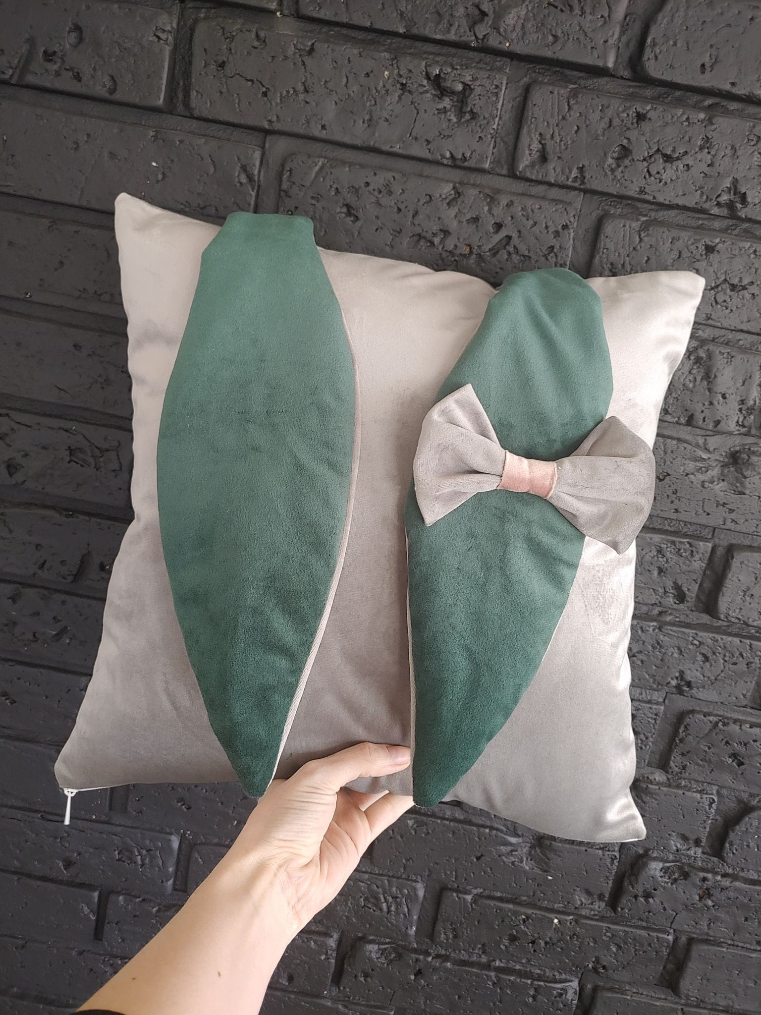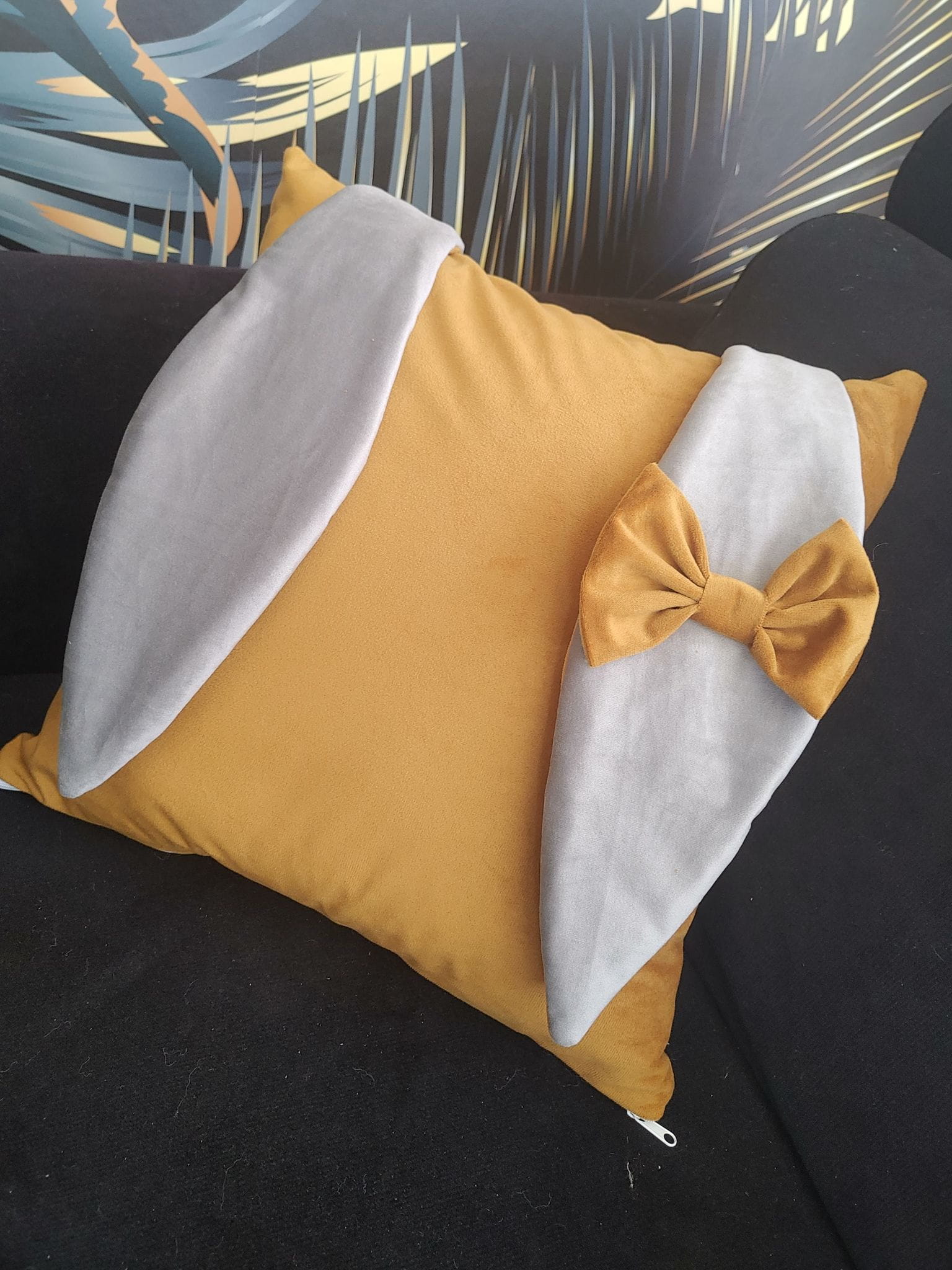Poduszka z uszami i kokardą to stylowy element dekoracyjny, który wprowadzi do wnętrza przytulny i świąteczny klimat. Doskonale sprawdzi się jako ozdoba salonu lub sypialni.
