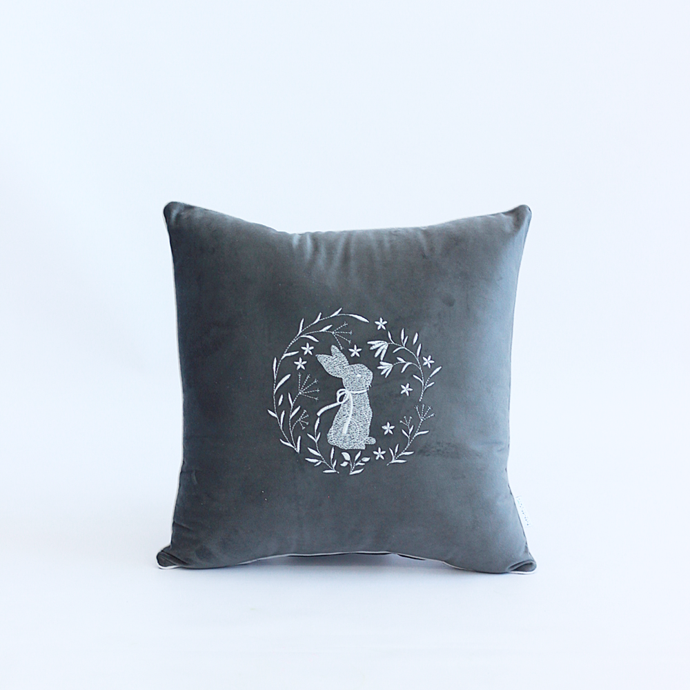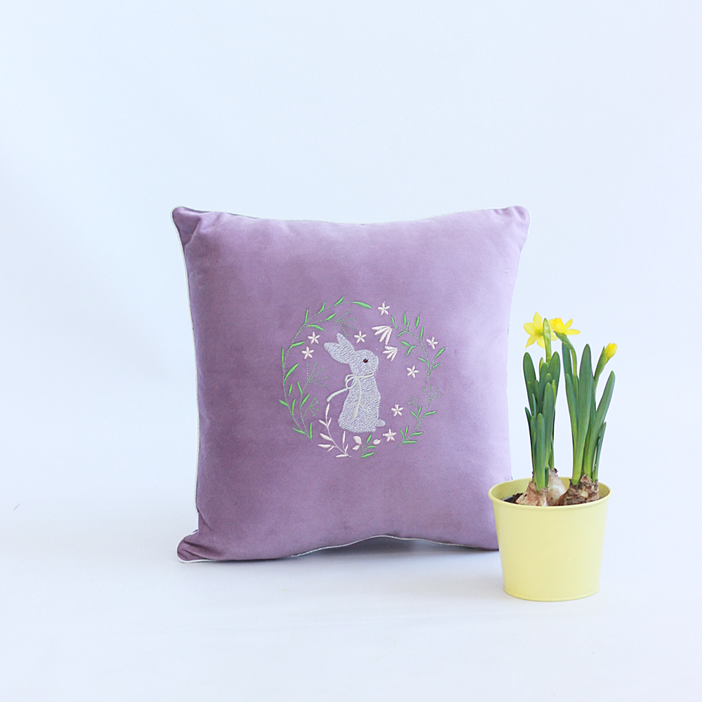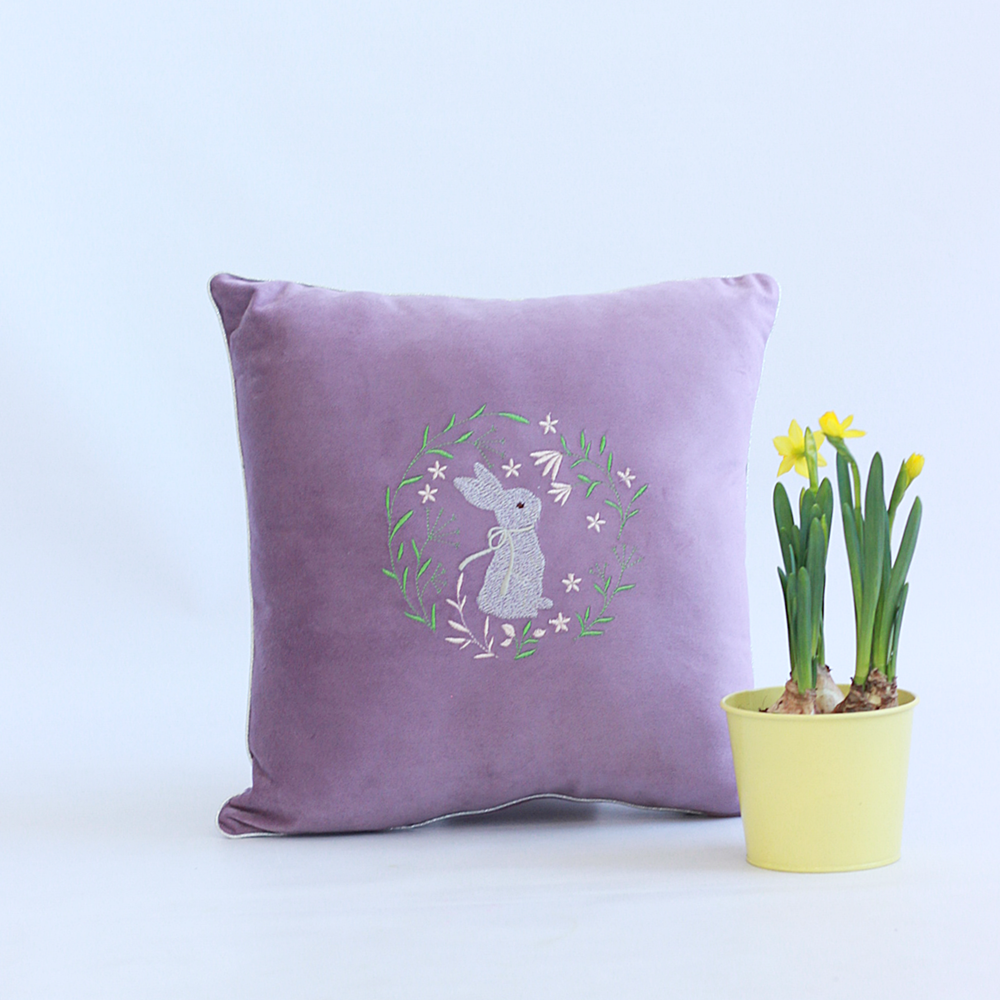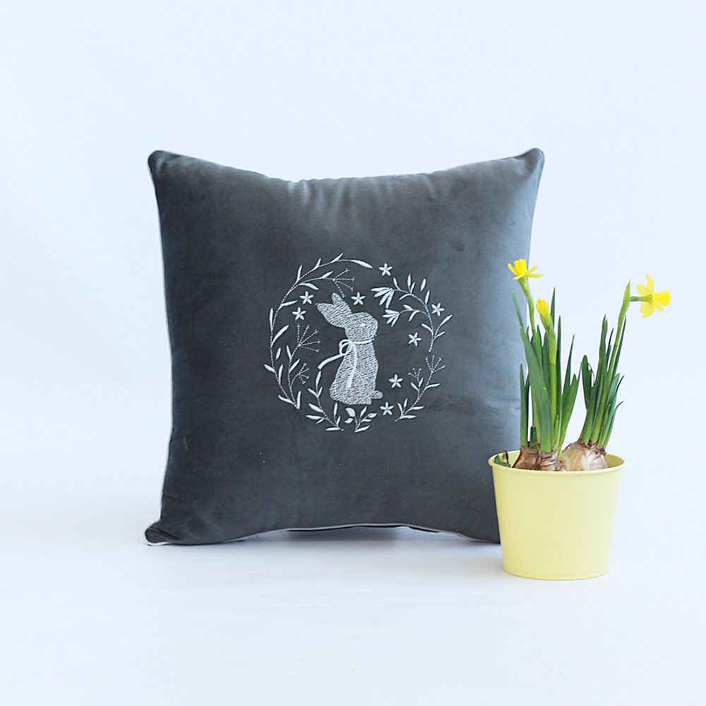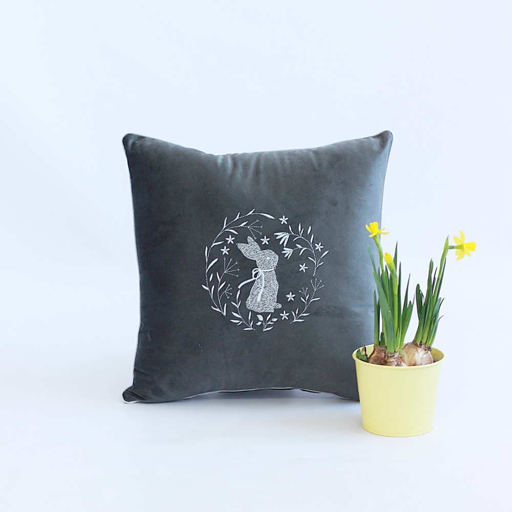 Poduszka Wielkanocna z Weluru – Haftowany Zając