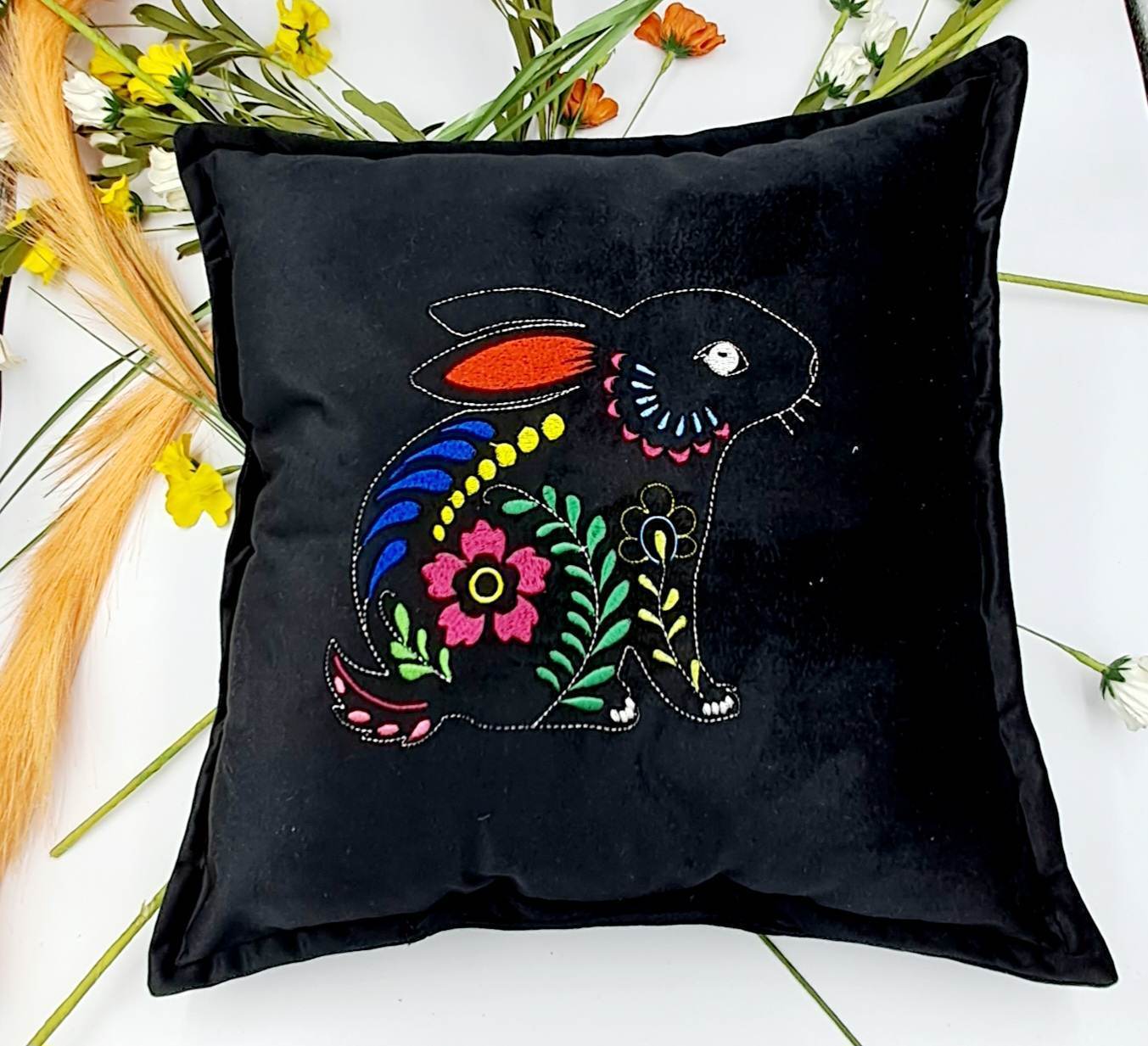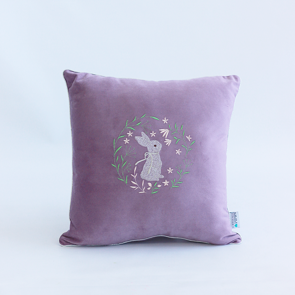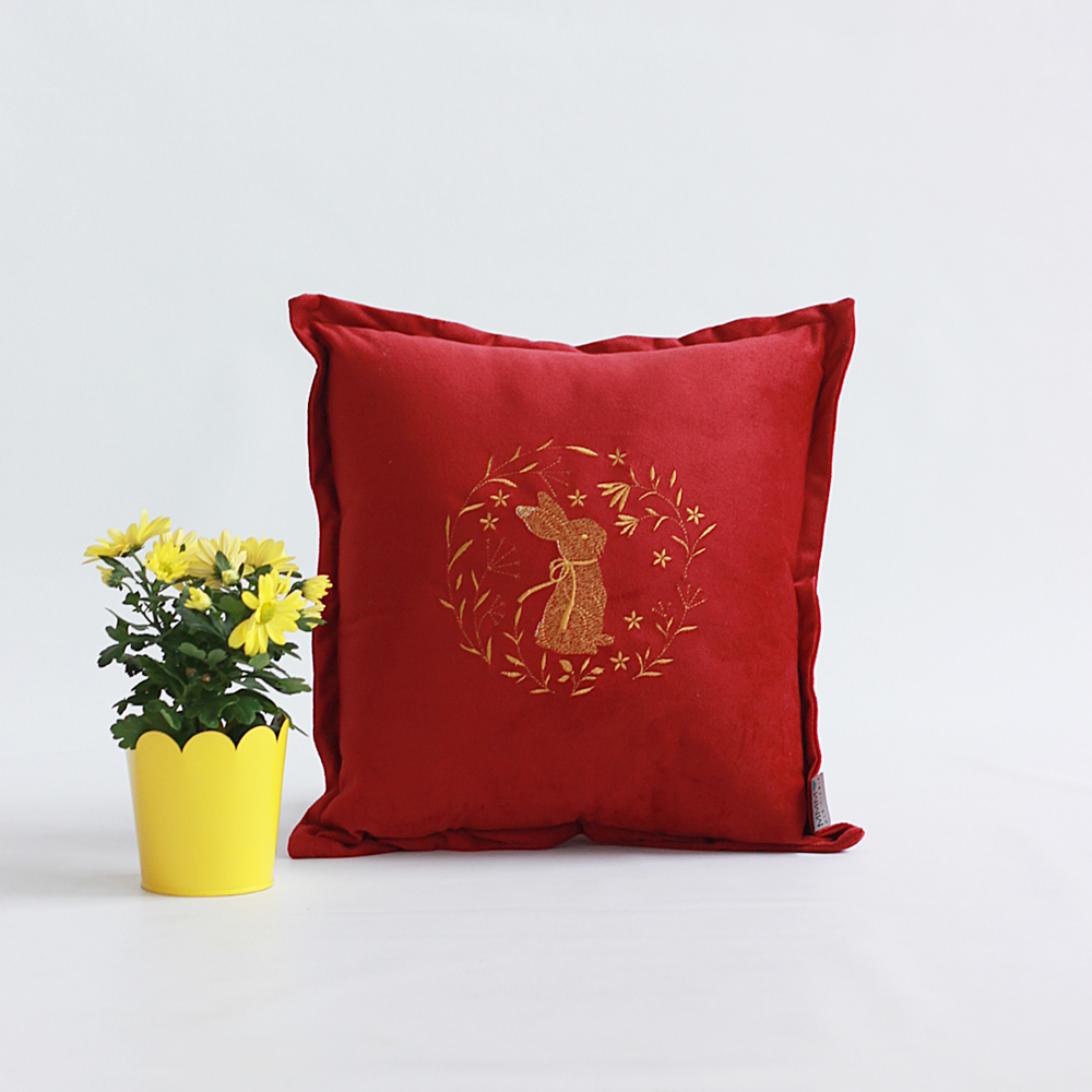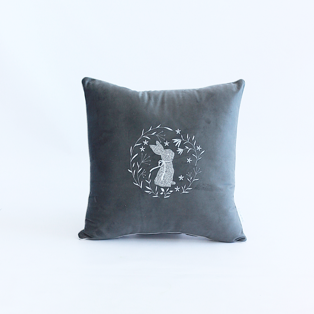 Poduszka Wielkanocna z Weluru – Haftowany Zając